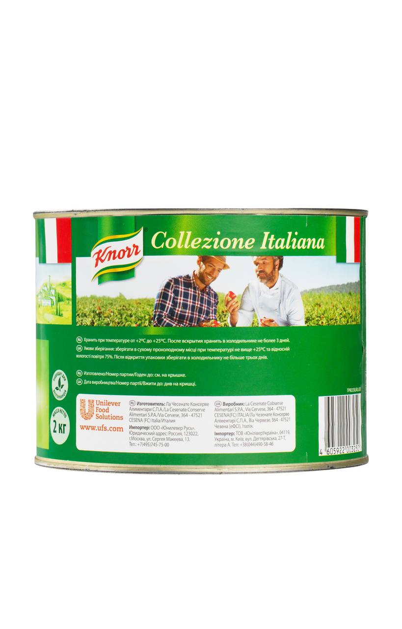 Knorr Консервированные овощи Томато-пронто (2кг) - готовый к использованию томатный соус по классической рецептуре, из сладких и сочных итальянских грунтовых томатов, собранных на пике зрелости. Не требует термообработки для приготовления холодных супов и соусов. Является идеальной основой для пиццы и пасты, а также используется в качестве ингредиента для приготовления горячих блюд, супов и соусов. . Состав: Томаты, томатная паста, растительное масло, соль, сахар, лук, регулятор кислотности лимонная кислота.Срок годности 24 месяца. Хранить в сухом прохладном месте. Температура хранения от +2 до +25 Со. После вскрытия хранить в холодильнике не более 3 дней. Состав короба: 6шт.