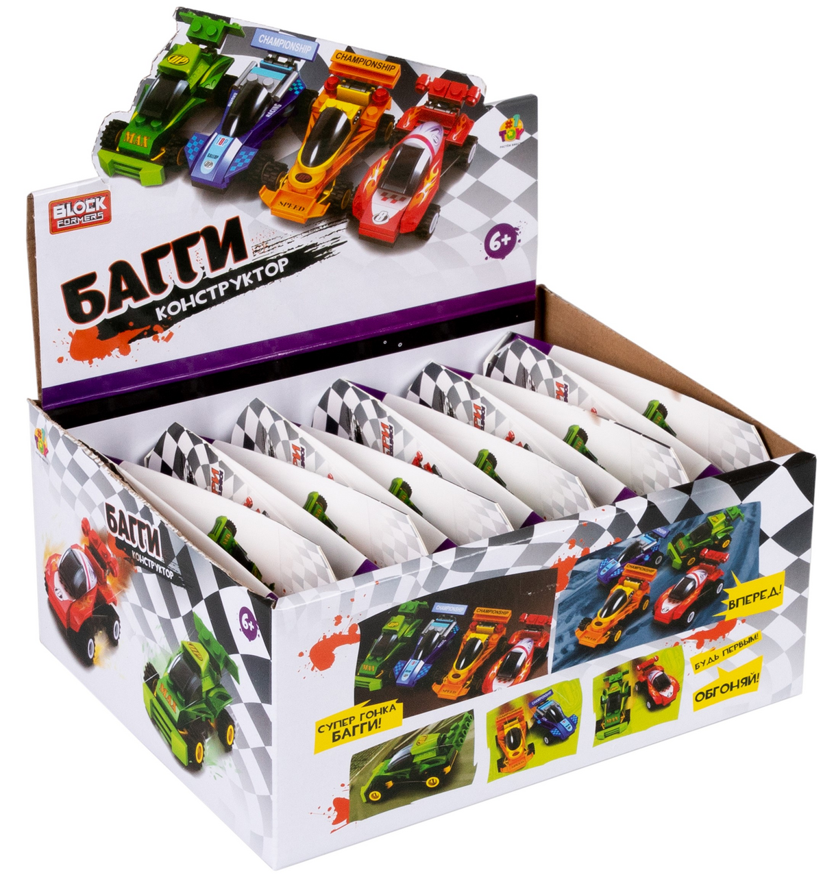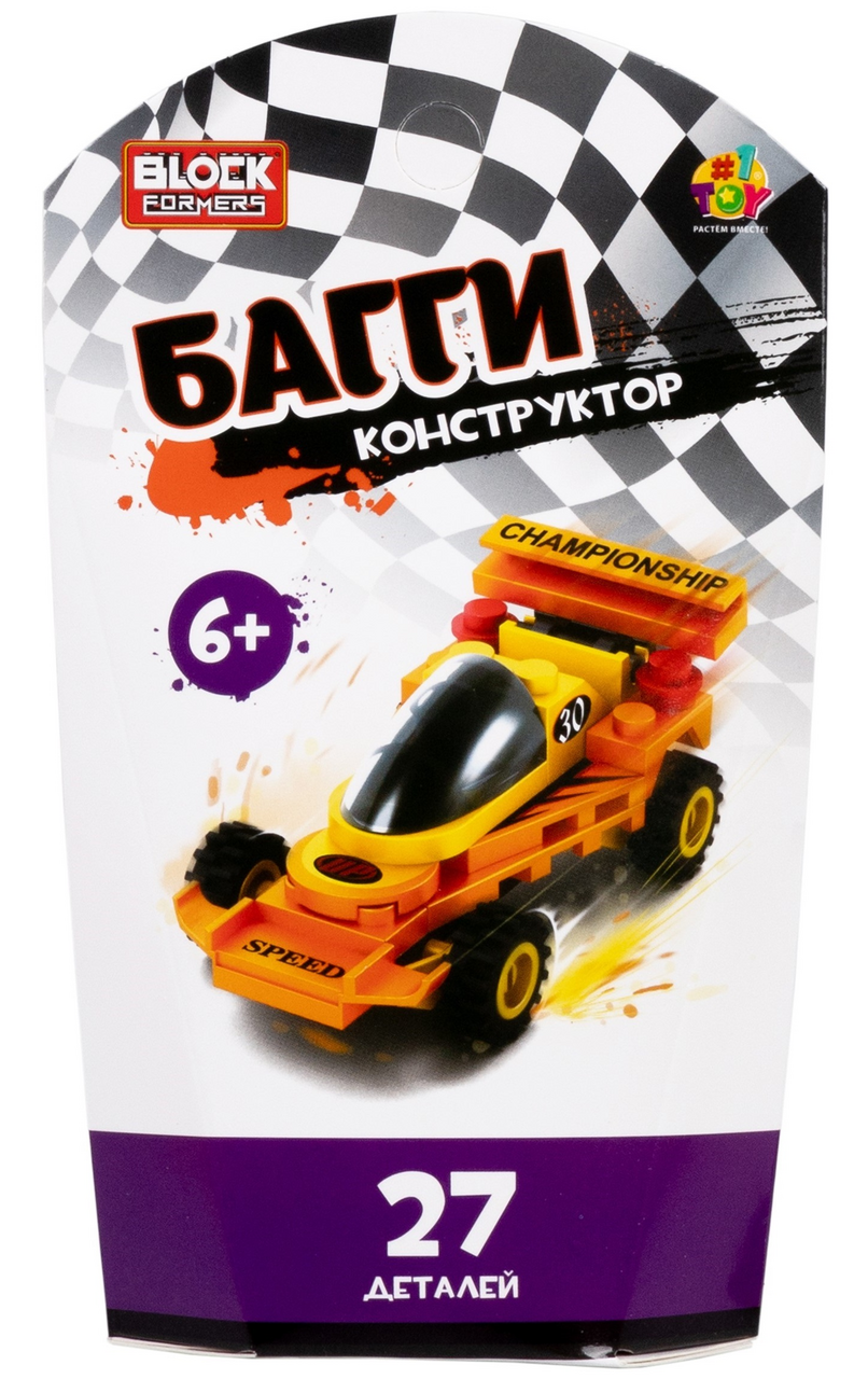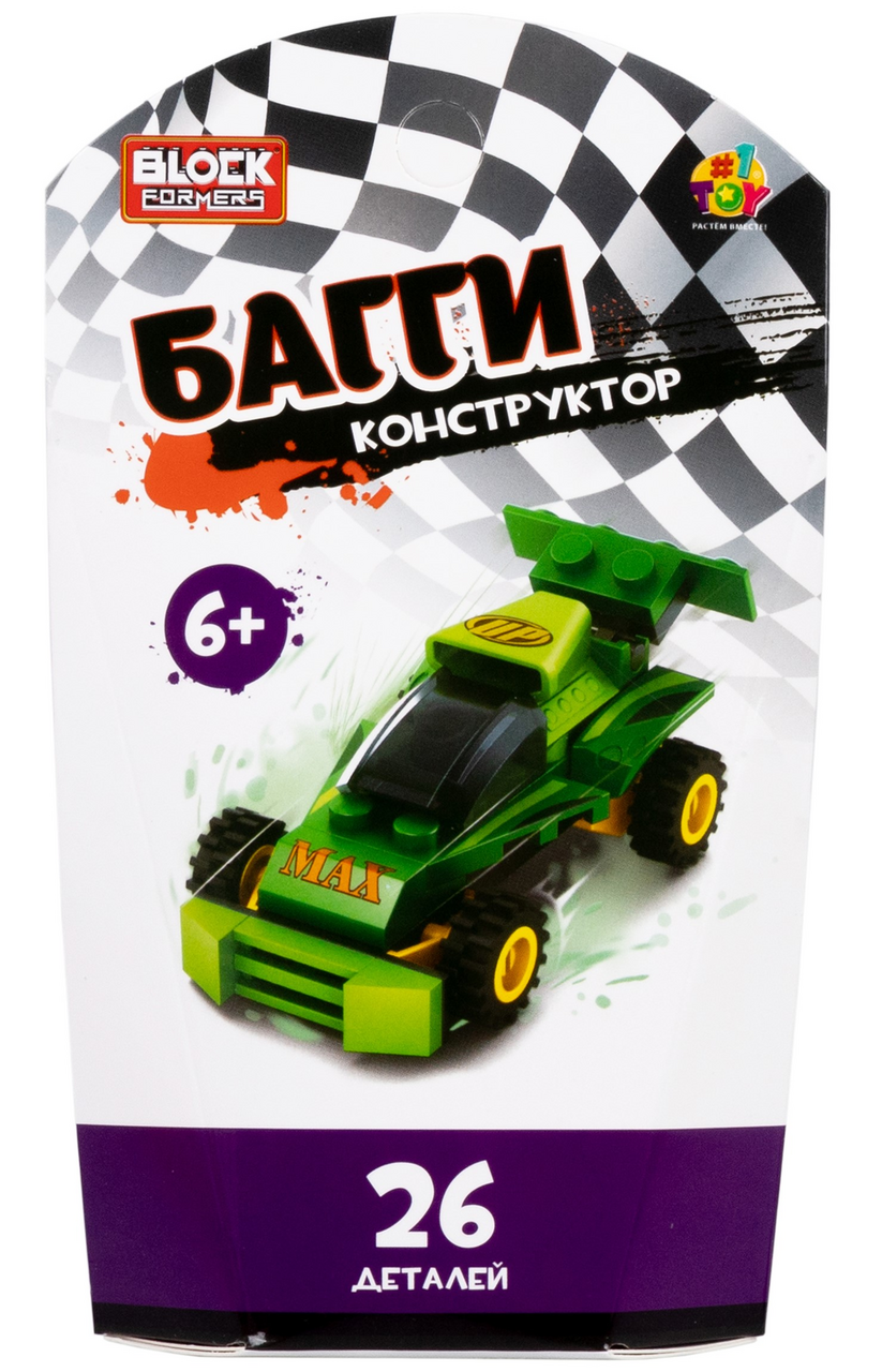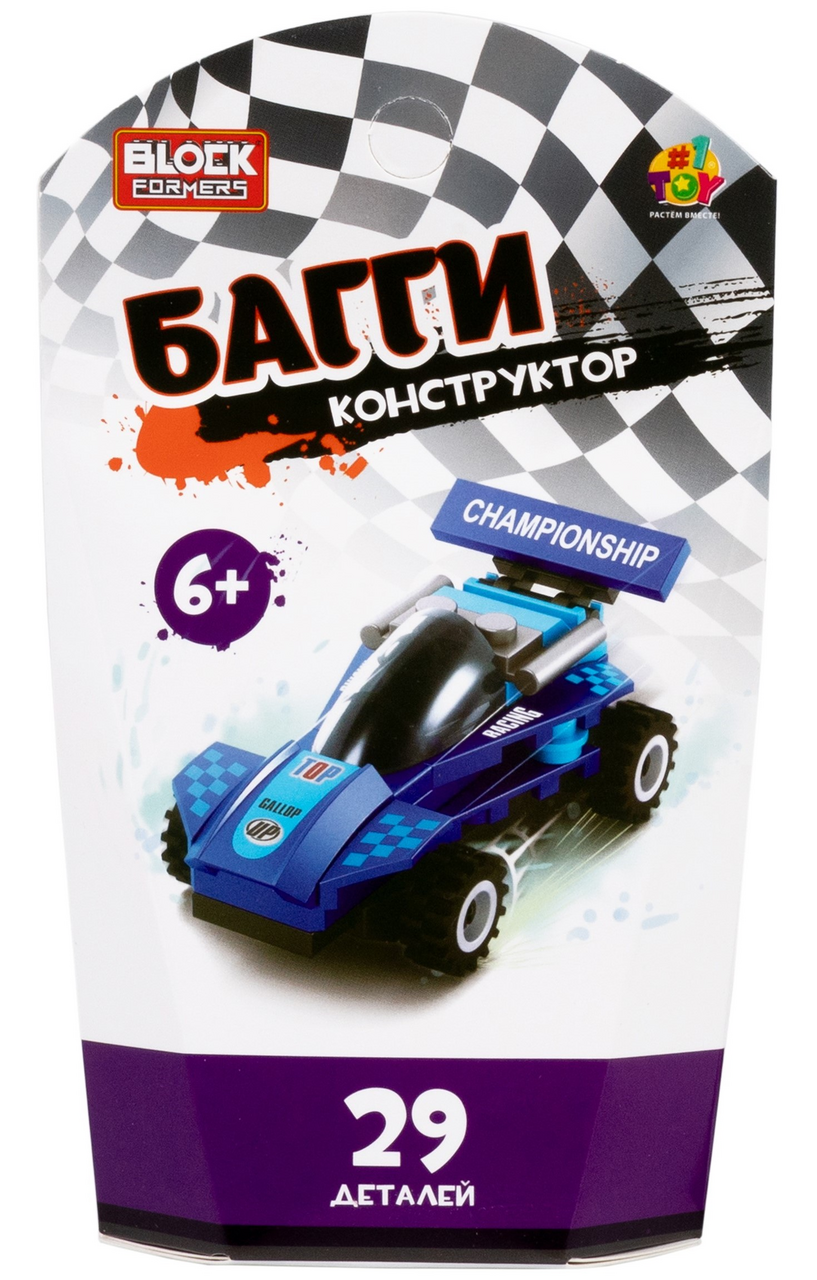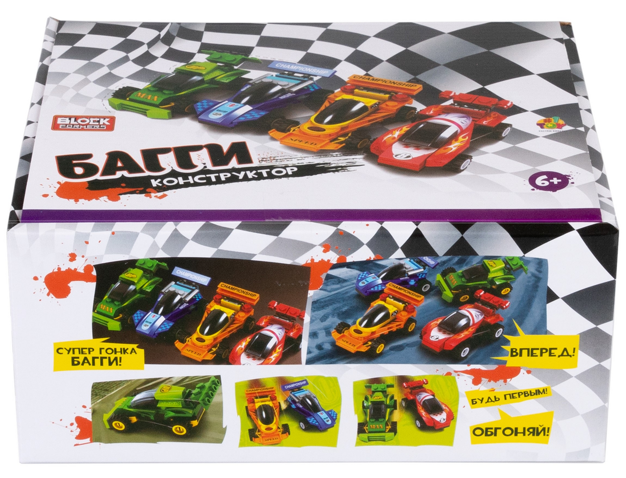 3D-конструктор 1Toy Blockformers Багги позволит собрать свою собственную машинку. Он имеет красочный и необычный дизайн, который не оставит равнодушными любителей сборки фигурок. В серии 4 вида, можно собрать все, чтобы на полочке красовалась своя собственная коллекция машинок для гонок. Собирая конструктор, мы не только увлекаемся на продолжительный период времени, развиваем внимание, креативное и пространственное мышление, но и становимся усидчивыми, целеустремленными. Также при взаимодействии с мелкими деталями совершенствуется мелкая моторика рук. Подойдет такой конструктор для мальчиков и девочек, он может быть полезным подарком на 23 февраля, 8 марта, Новый год или день рождения. Подходит для детей старше 6 лет. Совместим с другими конструкторами.