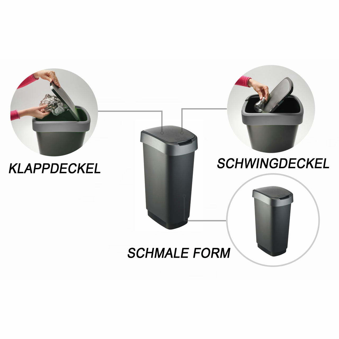 Контейнер для мусора Rotho Swing Twist черно-серый 25л, 47.6 x 25.2 x 33.3см