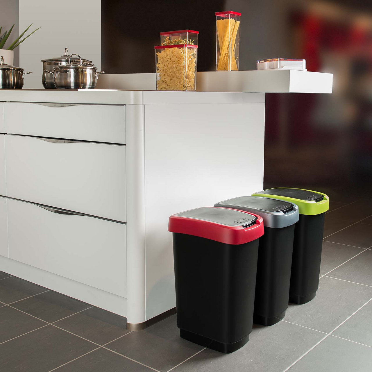 Использование контейнеров для мусора Swing Twist Rotho гарантирует чистоту и порядок, тем более, что можно комбинировать различные размеры мусорных ведер по мере необходимости: например, если Вы используете большое ведро для бумажных отходов или консервных банок, то мы рекомендуем использовать малое для органических отходов - выбор за Вами. Крышка закрывается бесшумно и надежно. Конструкция спроектирована таким образом, что можно легко очистить ведро и крышку. Пластик покрыт специальным покрытием, для уменьшения видимости отпечатков пальцев