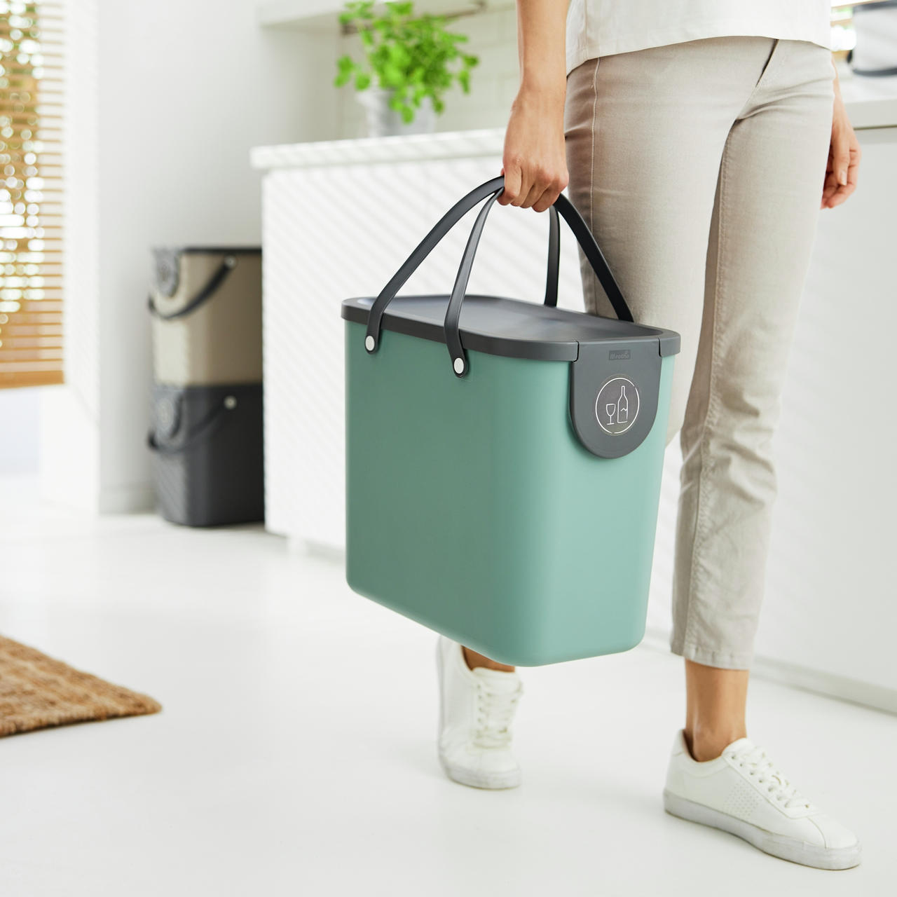 Контейнер для мусора Rotho Albula зеленый 25 л, 34 x 23,5 x 40 см – незаменимая вещь в доме. Мусорное ведро подходит для сбора любых отходов дома и на кухне, может быть использовано отдельно или в комплекте с 6 и 25 литровым ведром серии Albula для раздельного сбора мусора. Контейнер для мусора имеет прямоугольную форму. Он сделан из переработанного пластика. Изделие оснащено двумя гибкими ручками. Они облегчают перемещение аксессуара, позволяет быстро и легко вынести мусор при необходимости. Герметичная крышка помогает предотвратить неприятные запахи, не допустить распространение бактерий. Боковой клапан позволяет загрузить мусор, не открывая крышку.