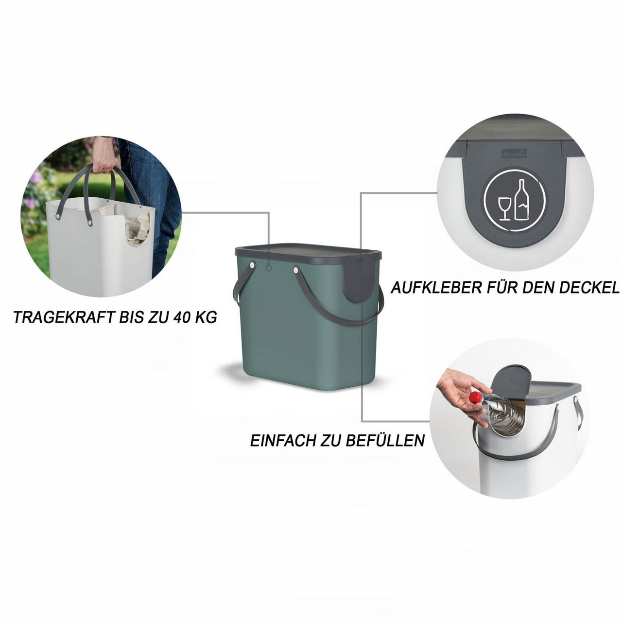 Контейнер для мусора Rotho Albula зеленый 25л, 34 x 24 x 40см