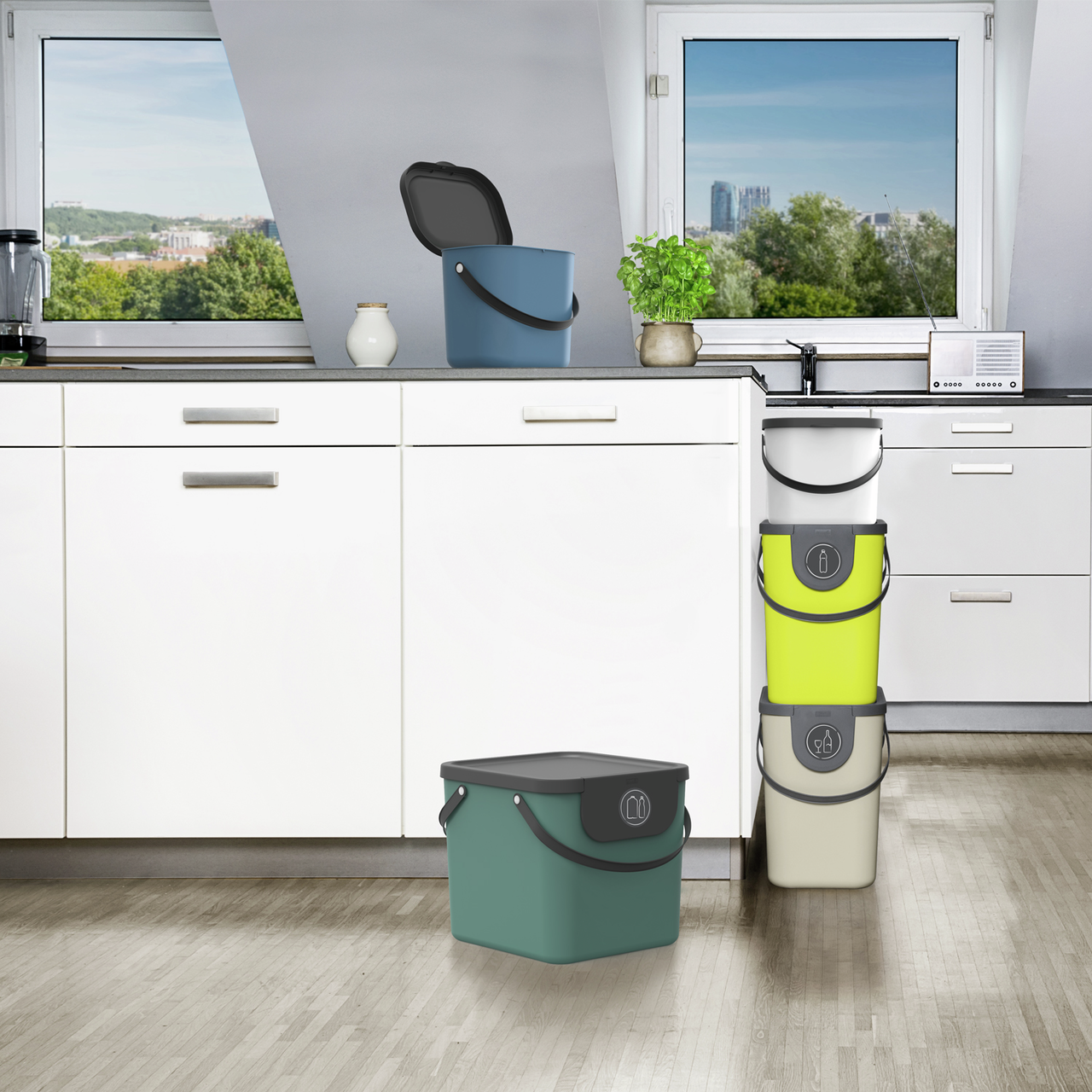 Контейнер для мусора Rotho Albula синий 40 л, 34 x 35,5 x 39,8 см – незаменимая вещь в доме. Мусорное ведро подходит для сбора любых отходов дома и на кухне, может быть использовано отдельно или в комплекте с 6 и 25 литровым ведром серии Albula для раздельного сбора мусора. Контейнер для мусора имеет прямоугольную форму. Он сделан из переработанного пластика. Изделие оснащено двумя гибкими ручками. Они облегчают перемещение аксессуара, позволяет быстро и легко вынести мусор при необходимости. Герметичная крышка помогает предотвратить неприятные запахи, не допустить распространение бактерий. Боковой клапан позволяет загрузить мусор, не открывая крышку.