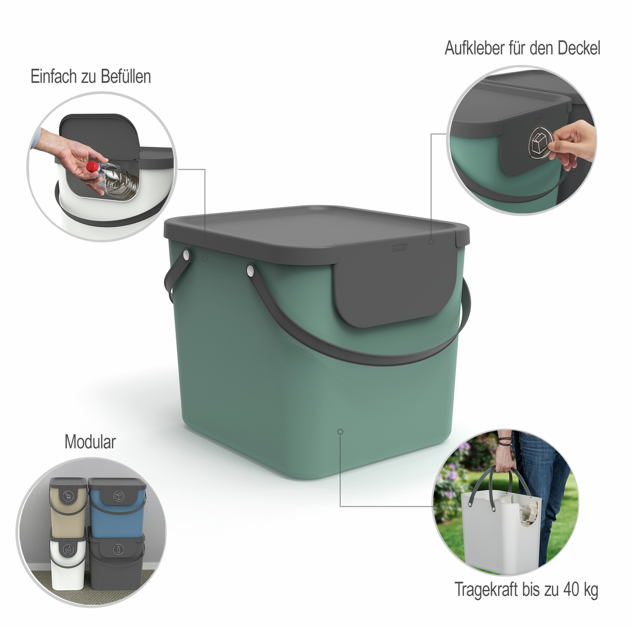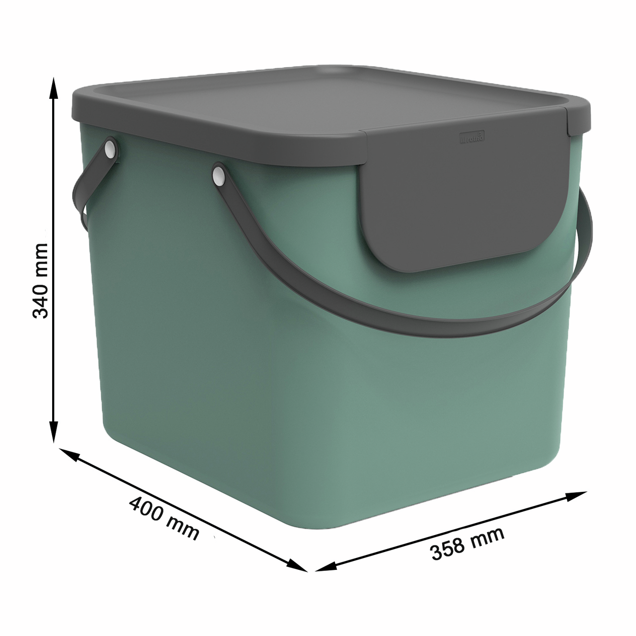 Контейнер для мусора Rotho Albula зеленый 40л, 34 х 36 x 40см