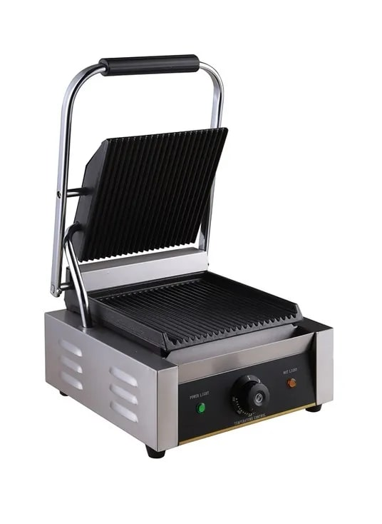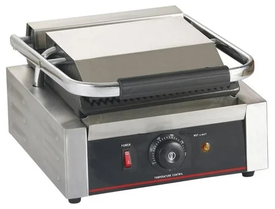 Пресс-гриль Gastrorag NPL-EGD10E – один из самых компактных и недорогих электрогрилей азиатского бренда GASTRORAG. Относится к оборудованию, предназначенному для профессиональных кухонь, приготовления уличного фаст-фуда. Может использоваться для обслуживания выездного банкета. Благодаря своим компактным размерам подходит для домашней эксплуатации. Агрегат состоит из одной рабочей зоны, которая имеет верхнюю и нижнюю рифленые плитки со встроенными нагревательными элементами. Корпус сделан из нержавеющей стали. Электрогриль экономичен, потребляет всего 1,8 кВт.