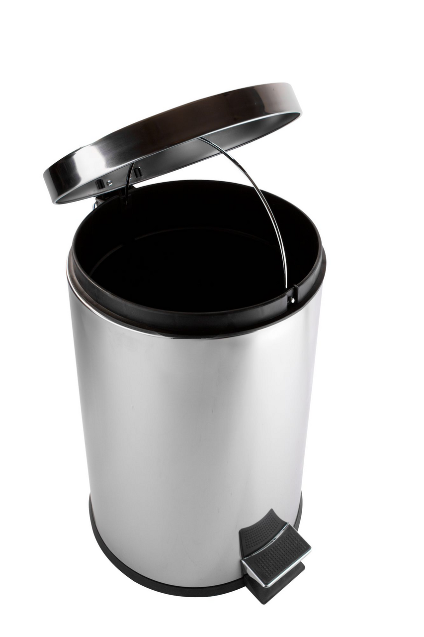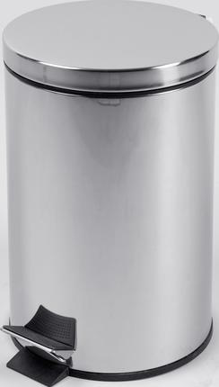Мусорный бак. Объем 20 л. Глянцевый, из хромированной стали, с крышкой и педалью, внутреннее ведро из пл��стика с металлической ручкой.