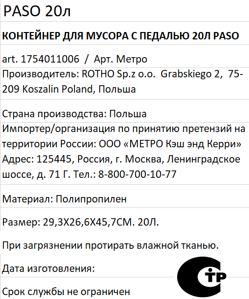 Внутри можно закрепить одноразовые пакеты для бытовых отходов. Ведро снабжено педалью, что позволяет легко открывать крышку и при необходимости удерживать ее в вертикальном положении. Клапан плотно прилегает к емкости, что препятствует распространению неприятных запахов. Контейнер идеально подходит для использования как в домашних условиях, так и в офисе, и на улице.