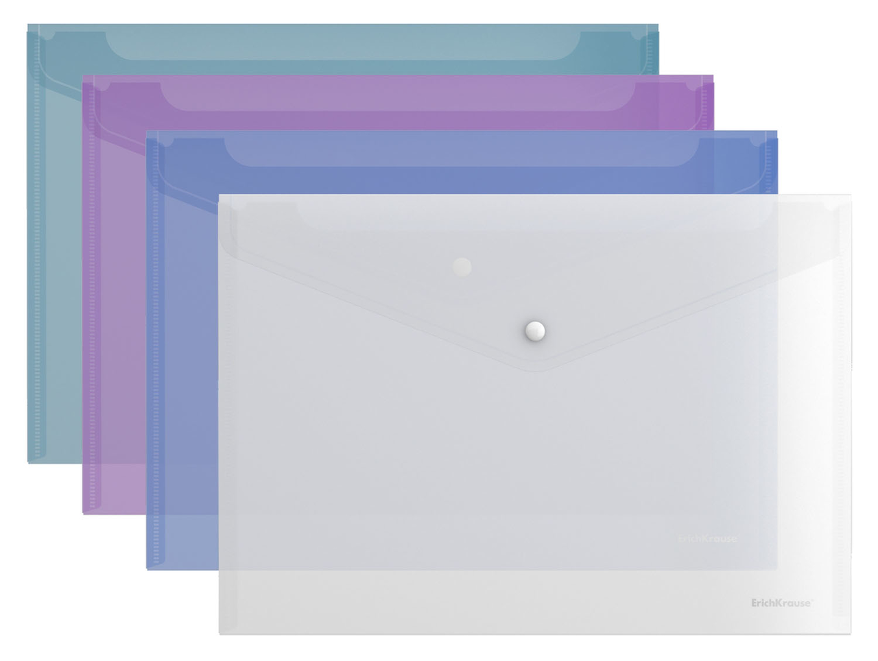 Папка-конверт Erich Krause на кнопке А4 полупрозрачная цветная 140мкм