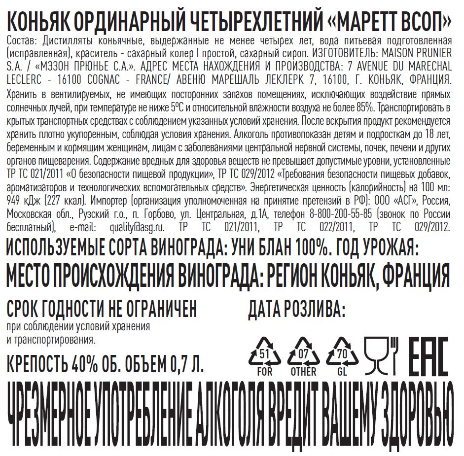 Коньяк Marett VSOP в подарочной упаковке, 0.7л