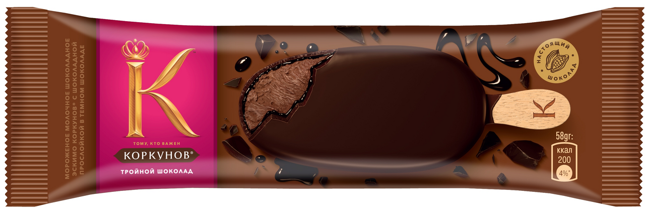 Мороженое А.Коркунов Двойной шоколад Эскимо молочное в темном шоколаде 62 г