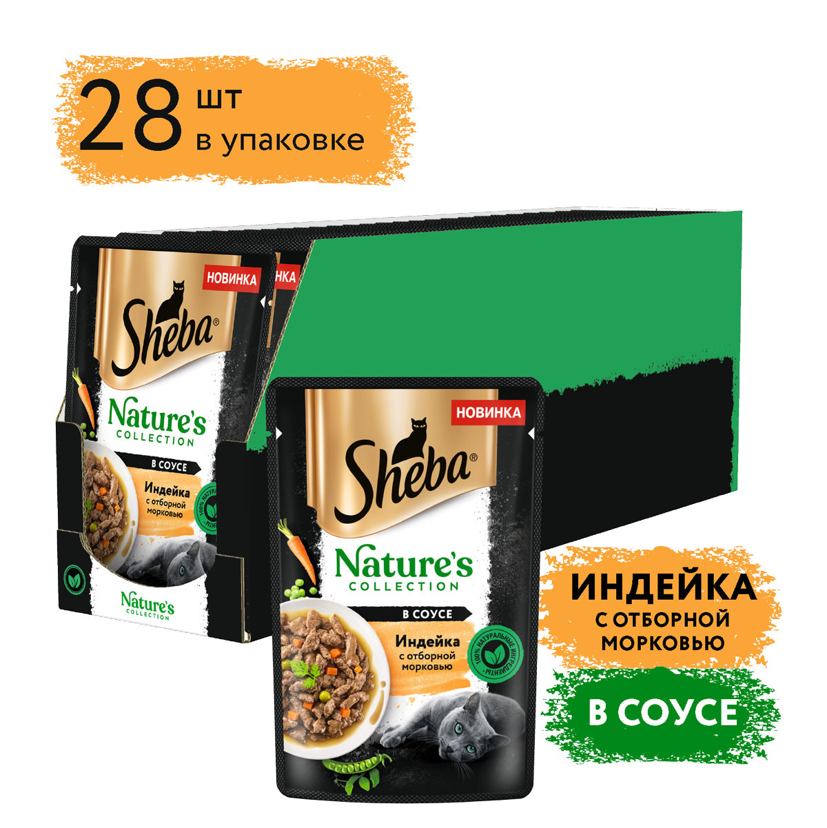 Корм влажный Sheba Nature's Collection для кошек с индейкой и морковью, 75г x 28 шт