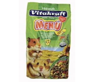 Корм для хомяков VITAKRAFT Premium производится только из натуральных ингредиентов, без использования консервантов и искусственных красителей. В его основе три комплекса, которые поддерживают хорошее здоровье и отличный внешний вид. При регулярном использовании этого корма в рационе хомячка, укрепляются зубы, иммунитет становится более стойким к всевозможным болезням. Позаботьтесь о питомце, которого вы приручили. Ему необходим натуральный здоровый корм. Ведь у грызунов основная часть жизни проходит в поисках и употреблении еды. Приобрести корм для хомяков VITAKRAFT Premium вы сможете в торговом центре METRO #incity.Состав: компоненты растительного происхождения, злаки, овощи, фрукты, тросниковая патока, минералы, растительные масла и жиры, конценрат алоэ вера. Анализ состава: растительный протеин 15%, растительные жиры 5%, клетчатка 9%, зола 4%, влага 12%, углеводы 55%, кальций 0.5%, фосфор 0.4%.
