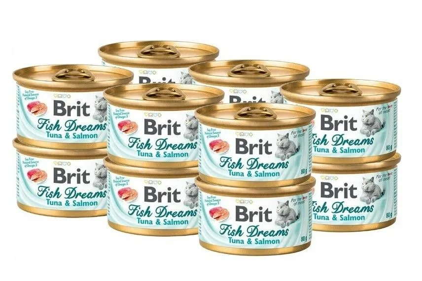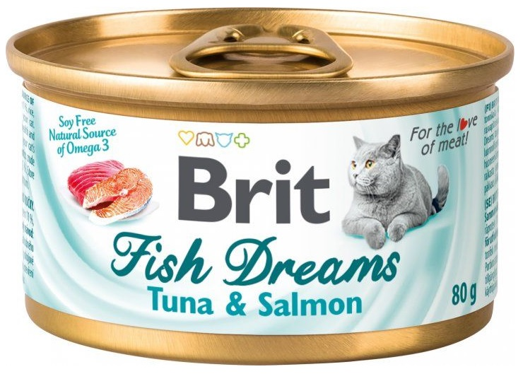 Сбалансированное питание для Вашей кошки. В составе корма содержатся тунец и лосось в натуральном соусе для отличного здоровья, самочувствия и красоты Вашего любимца. Brit Fish Dreams – сбалансированное питание для Вашей кошки. В составе корма содержатся тунец и лосось в натуральном соусе для отличного здоровья, самочувствия и красоты Вашего любимца. Следует давать корм комнатной температуры. Размер порции может отличаться в зависимости от веса кошки. Рекомендуемое ежедневное количество корма представлено в таблице рекомендаций по кормлению. У питомца всегда должен быть свободный доступ к свежей воде.