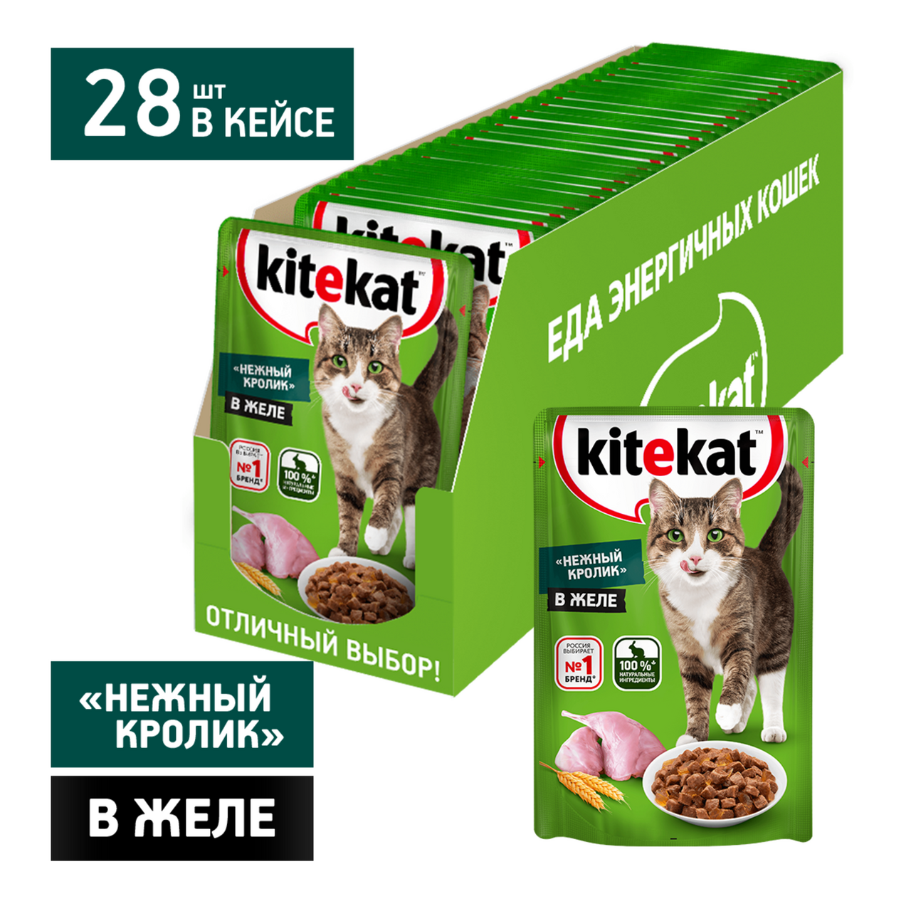 Корм влажный Kitekat Нежный кролик в желе для взрослых кошек, 85г x 28 шт