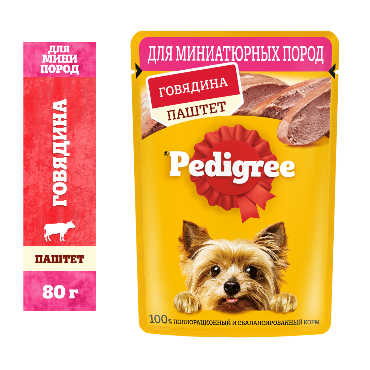 Корм влажный Pedigree паштет для собак миниатюрных пород с говядиной, 80г х 24 шт