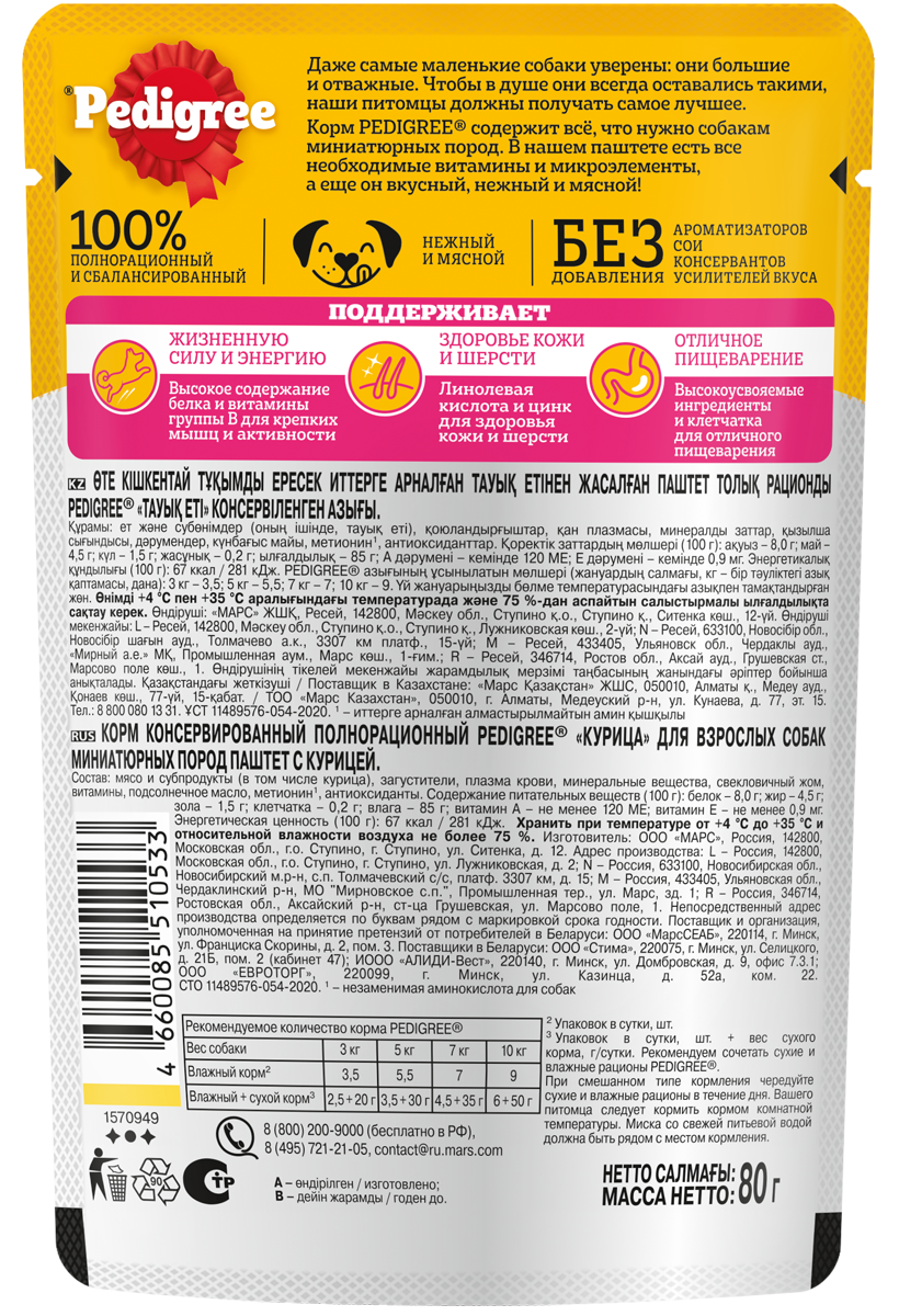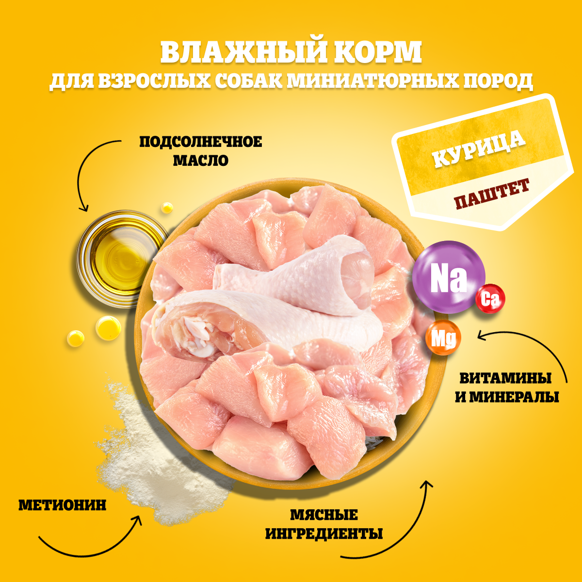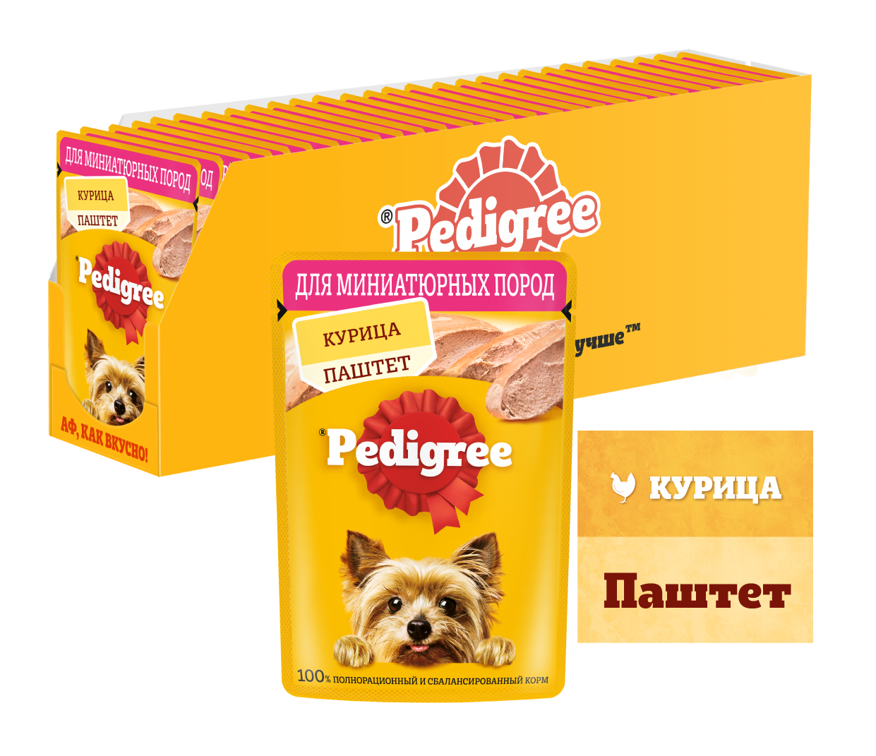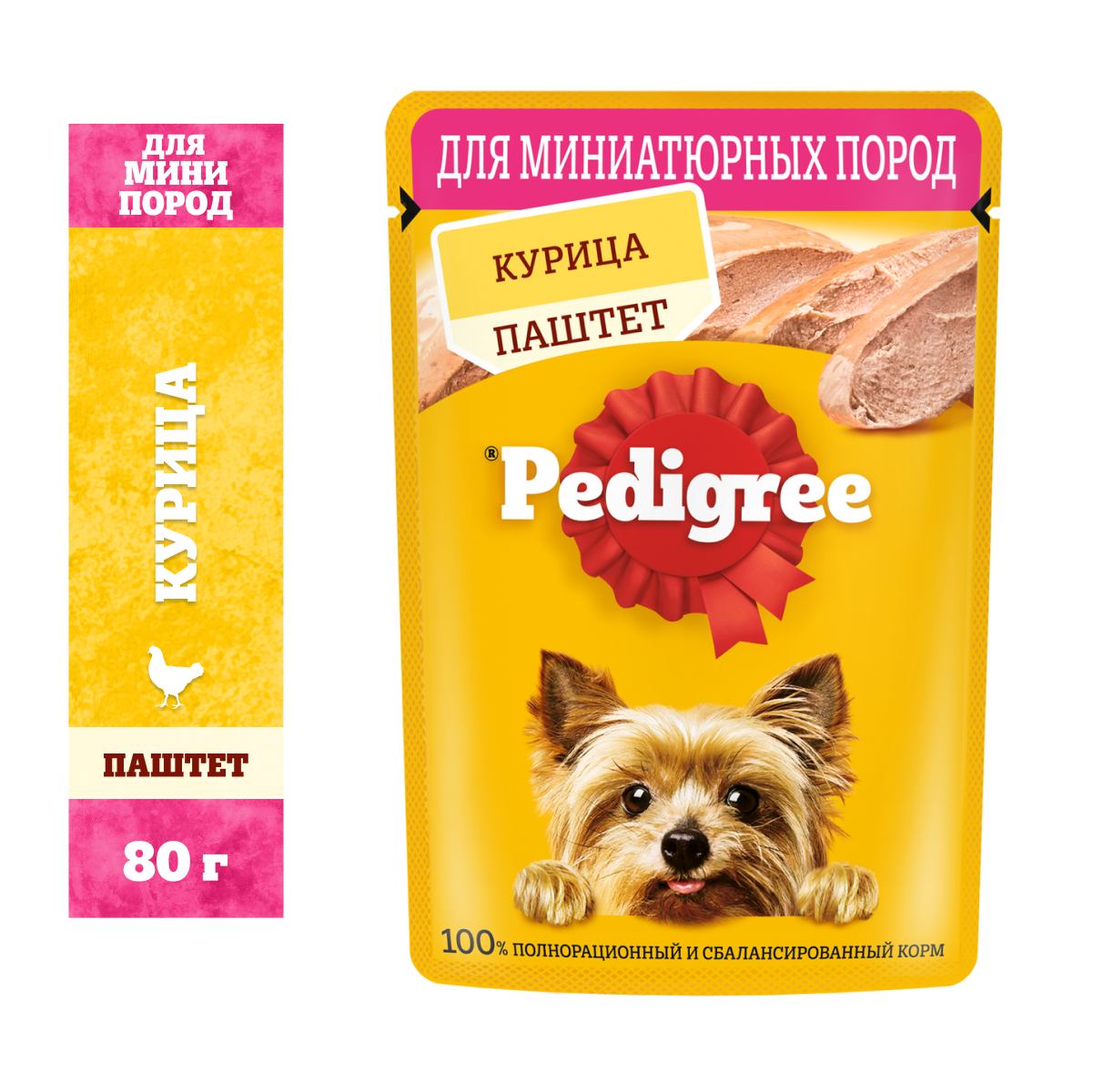 Корм влажный Pedigree паштет для собак миниатюрных пород с курицей, 80г х 24 шт