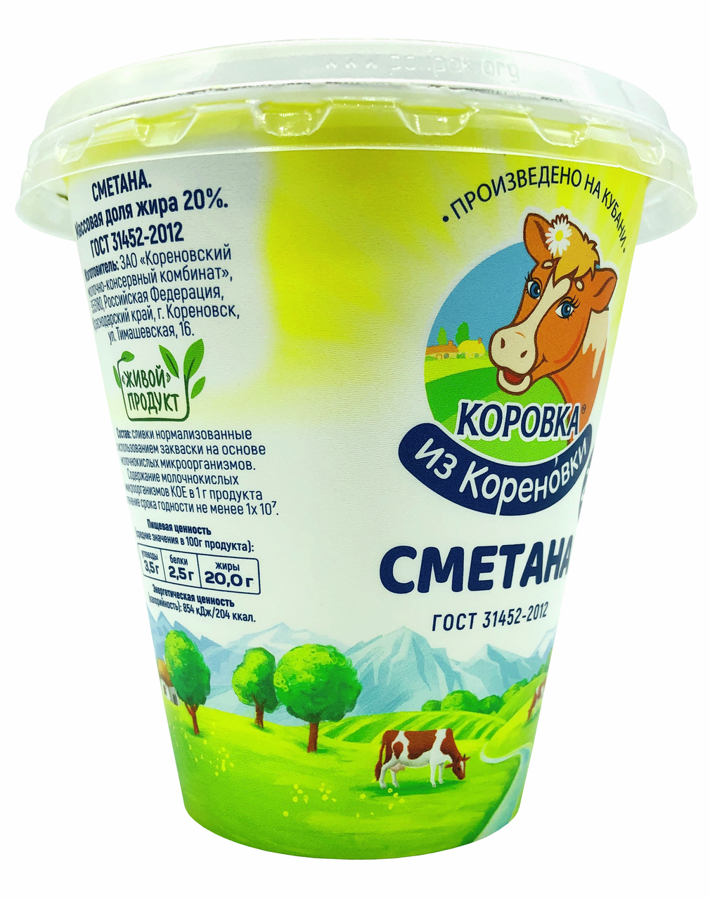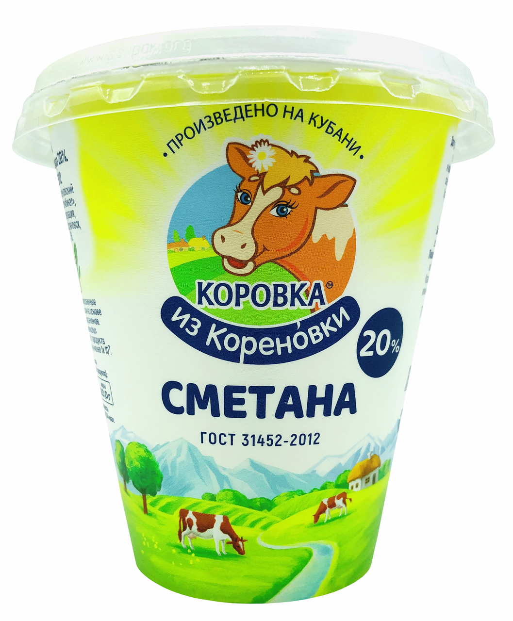 Сметана Коровка из Кореновки является традиционным кисломолочным продуктом. Название сметана произошло от первоначального метода получения этого продукта: после сливания верхнего слоя , сметали второй слой, который находился под сливками. Это и была сметана — кисломолочный вкусный, высокопитательный продукт, который вобрал в себя множество полезных веществ молока. В состав сметаны входят ценные витамины В2, В12, А, Е, РР, С; а также железо, кальций и фосфор.