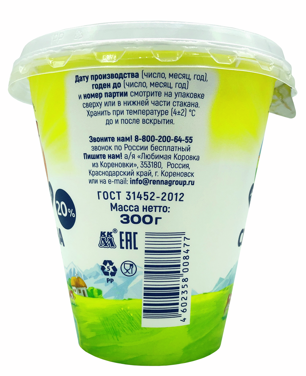 Сметана Коровка из Кореновки 20%, 300г