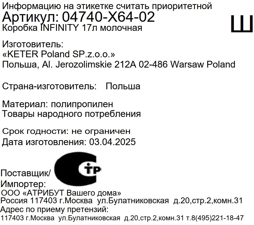 Корзина для хранения Curver Infinity молочная 17л, 35.5 x 26.2 x 21.9см
