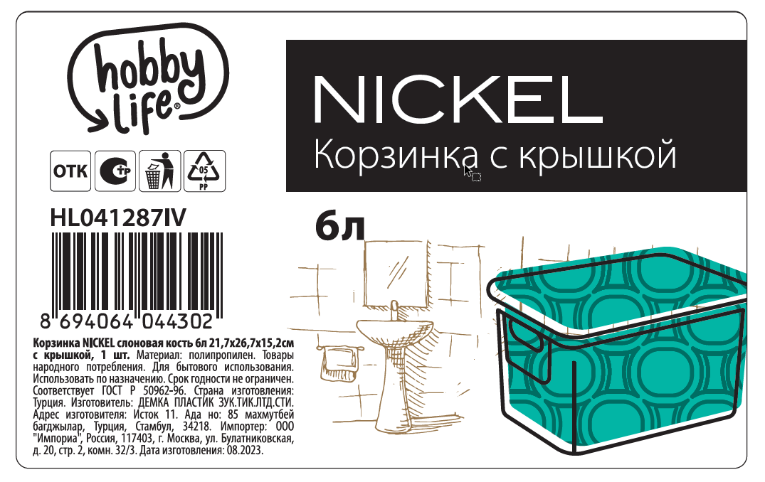 Корзина для хранения Hobby Life Nickel с крышкой белая 21.7 x 26.7 x 15.2см, 6л оснащена удобной крышкой, которая защищает содержимое от пыли и грязи. Корзина изготовлена из прочного материала, который обеспечивает долговечность и надежность использования. С ее помощью можно легко и компактно хранить различные предметы в доме, на даче или в офисе. Стильный дизайн и яркий цвет сделают эту корзинку не только функциональным, но и декоративным элементом интерьера. Идеальное решение для организации пространства и хранения различных предметов. Наличие прочной крышки обеспечивает защиту содержимого от пыли и грязи, а удобные ручки облегчают переноску корзины. Стильный дизайн и непрозрачные стенки позволят систематизировать пространство в зоне видимости на кухне или в гардеробной, в ванной комнате или в коридоре на верхней зоне. Благодаря конструкции, позволяющей штабелировать эти корзины для хранения можно максимально использовать вертикальное пространство для хранения в любом помещении.