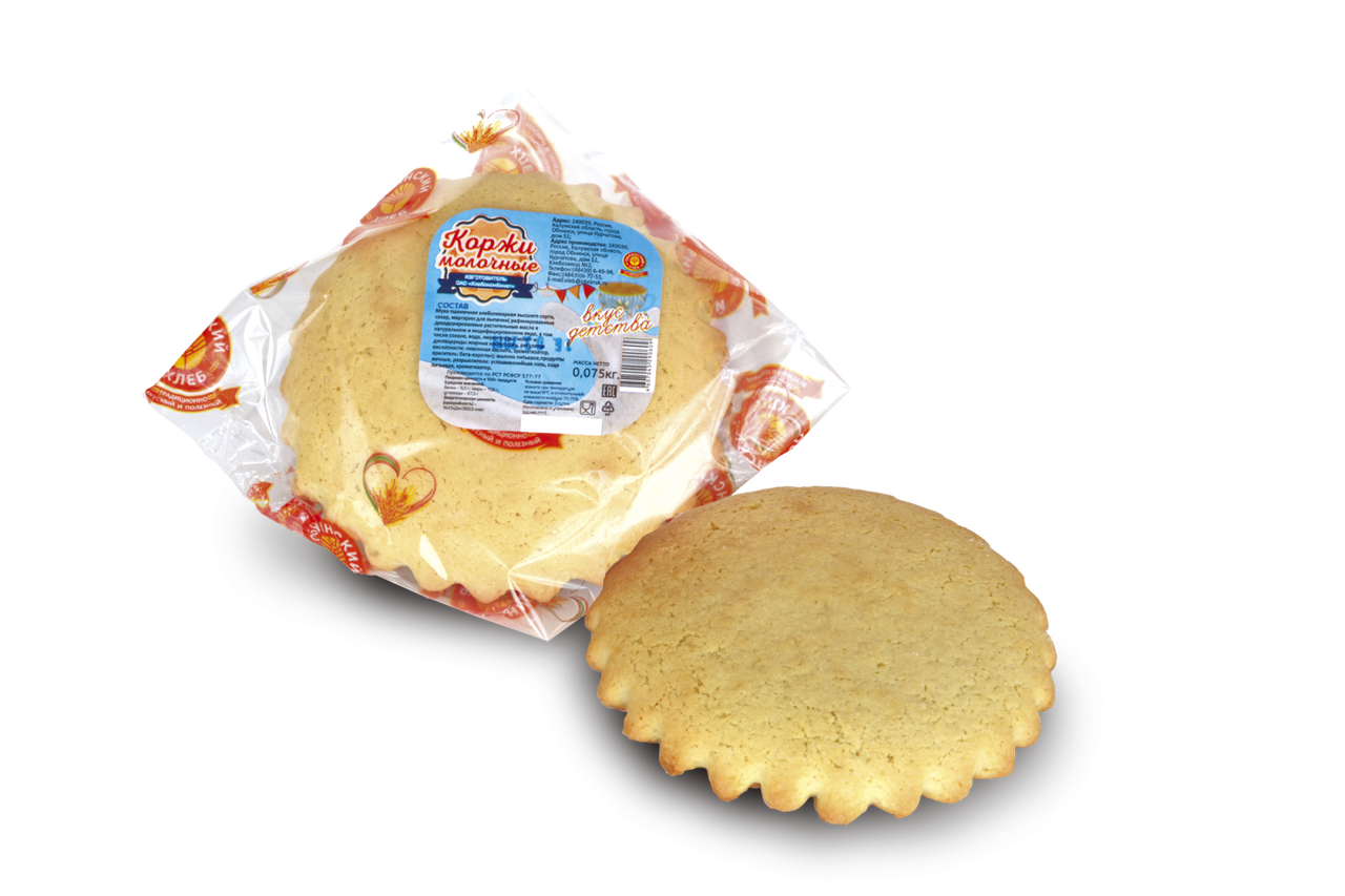 Корж ОБНИНСКИЙ ХЛЕБ Молочный – песочный коржик родом из детства, ароматный, мягкий, в меру рассыпчатый и сладкий. Соблюдение традиционных технологий на всех стадиях выпуска продукта обеспечивает неповторимый натуральный вкус и аромат любимой выпечки.