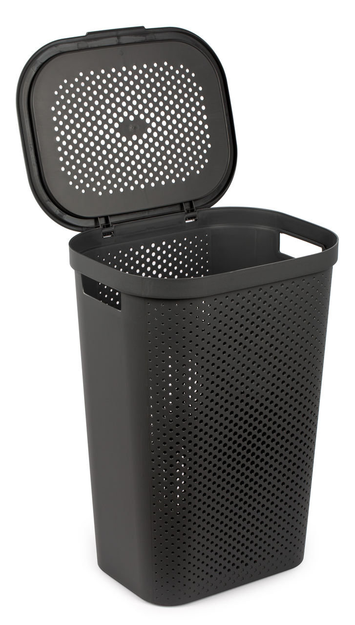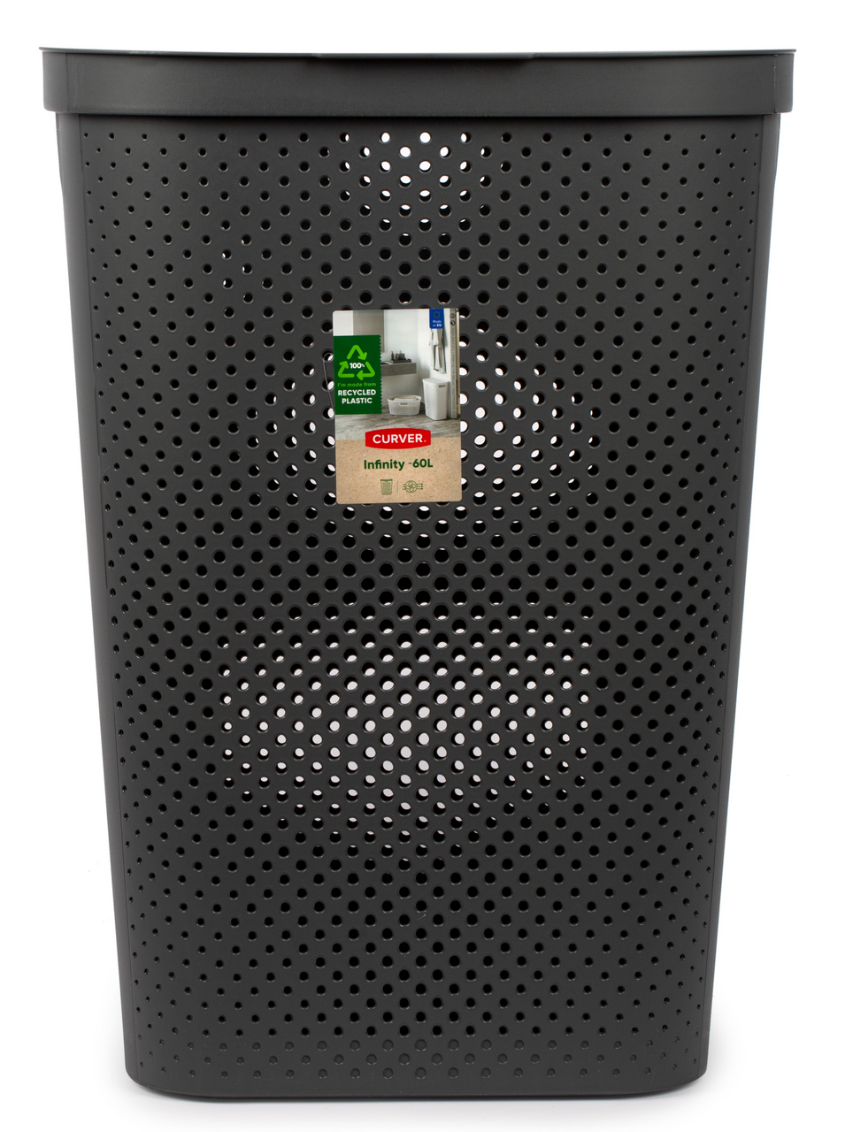 Корзина для белья Curver Infinity темно-серая 60л 43.7 x 35.1 x 60.2см предназначена для временного хранения грязных вещей. Аксессуар поместится в ванной, совмещенном санузле, в кладовке, займет немного места. Корзина вместительная и удобная. Вещи внутри не будут отсыревать и преть за счет отверстий в стенках емкости, обеспечивающих естественную вентиляцию. Использование такого аксессуара позволяет накопить достаточное количество грязной одежды для полноценной загрузки стиральной машины, дает возможность отсортировать вещи, которые можно стирать вместе. Станет органичным дополнением интерьера. Она отлично подойдет для хранения белья перед стиркой в ванной комнате. Специальные отверстия на стенках.