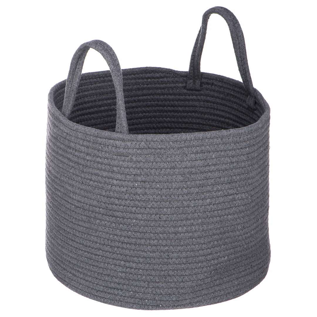 Корзина для хранения Handy Home круглая хлопковая шнурованная серая, 35 x 35 x 28см - стильная монохромная тканевая корзина Хлопок от Handy Home сплетена из хлопкового шнура классического серого цвета. Она гармонично дополнит интерьер в стиле эко, бохо или минимализм и поможет навести порядок на полках стеллажа, на полу в спальне или в ванной комнате. Разместите в ней одежду или бельё, шарфы, платки, ремни или другие аксессуары, полотенца, постельное бельё, плед или покрывало с кровати, детские игрушки или аксессуары для творчества. Серый и его приглушенные оттенки, графитовый и его вариации - эти комбинации уже стали базовыми, ведь они абсолютно универсальны.