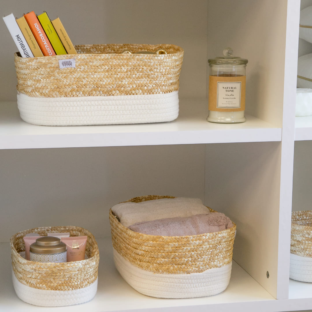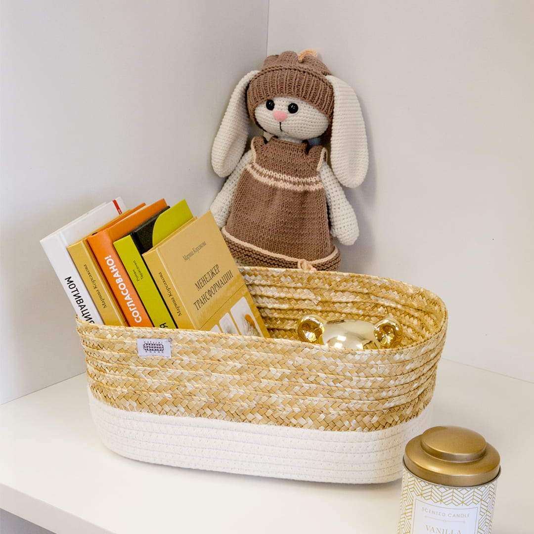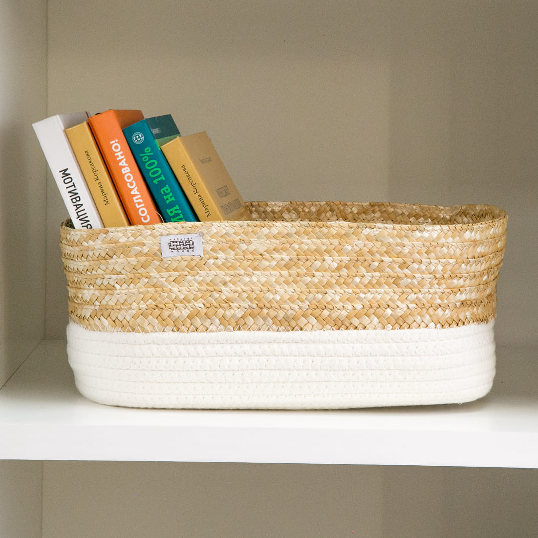 Корзина для хранения Natural House овальная молочная, 33 x 22 x 14см - плетеная стеллажная корзина станет отличным функциональным решением для хранения вещей и прекрасным дополнением интерьера в стиле сканди, бохо или минимализм. Материал изготовления корзины: пшеничная солома, хлопковый шнур.