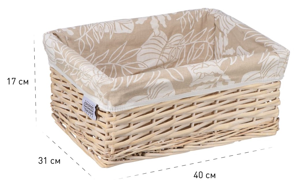 Плетеная стеллажная корзина с ручками из коллекции Листья удобна для использования в гардеробных, шкафах и комодах. В корзине можно хранить одежду и бельё или использовать для хранения других предметов. В комплекте с корзиной идёт съёмный чехол, который легко снимается для стирки. При изготовлении корзины используются только натуральные материалы, прошедшие антибактериальную обработку. Материал изготовления корзины: лоза ивы, ткань.
