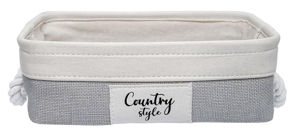 Корзина для хранения Handy Home прямоугольная серая, 32 x 23 x 10см - стеллажные корзины с ручками-канатами Кантри от Handy Home гармонично дополнят интерьер в стиле сканди, эко или минимализм. Такие корзины из рогожки подойдут для хранения одежды и белья, детских игрушек, полотенец и банных принадлежностей, аксессуаров для творчества и различных мелочей. Материал изготовления корзины: джут, EVA, полиэстер, хлопок, металлический каркас. Чудесно дополнит пространства, по стилистике близкие к природе. Прованс, кантри или эко-дизайн активно включают детали серого цвета в свои палитры. Особенно приветствуется грубоватый текстиль с легкими деревенскими мотивами. Открытые стеллажи, заполненные красиво оформленными текстильными корзинами, выг��ядят очень атмосферно и самобытно. Причем можно ставить корзины не только на стеллажи. Красивые емкости из натурального джута с подборкой любимых книг и журналов вы можете разместить на комод в гостиной. В ванной комнате уложить в нее чистые полотенца, банные принадлежности и аксессуары для бассейна. Прихватки, кухонные полотенца, текстильные салфетки или фартук в такой корзине на кухне будут всегда под рукой. Станет прекрасным дополнением интерьера и отличным функциональным решением для белья, игрушек и других различных предметов.