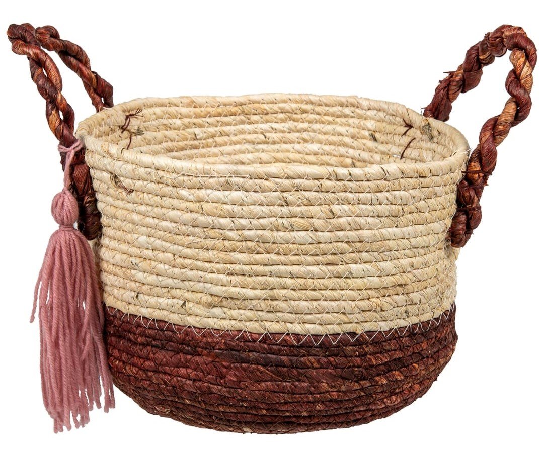 Плетеная корзина с ручками и симпатичной шерстяной кисточкой из коллекции Южная Америка станет отличным функциональным решением для открытого хранения вещей и разных мелочей, которые обычно некуда сложить. Прекрасное дополнение интерьера в стиле бохо и эко-бохо, кантри, фьюжн или в колониальном стиле. 100% ручная работа. При изготовлении корзины используются только натуральные материалы, прошедшие антибактериальную обработку. Материал: кукурузный лист, шерстяная веревка.