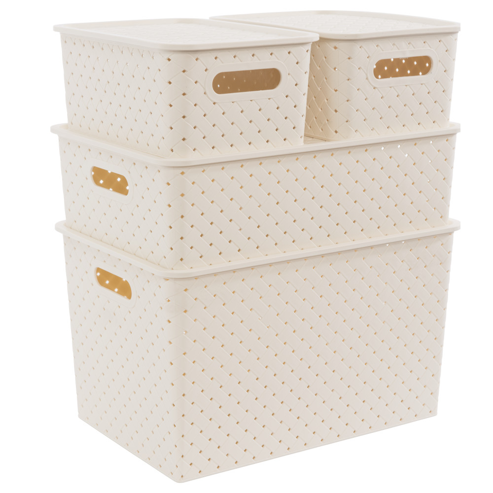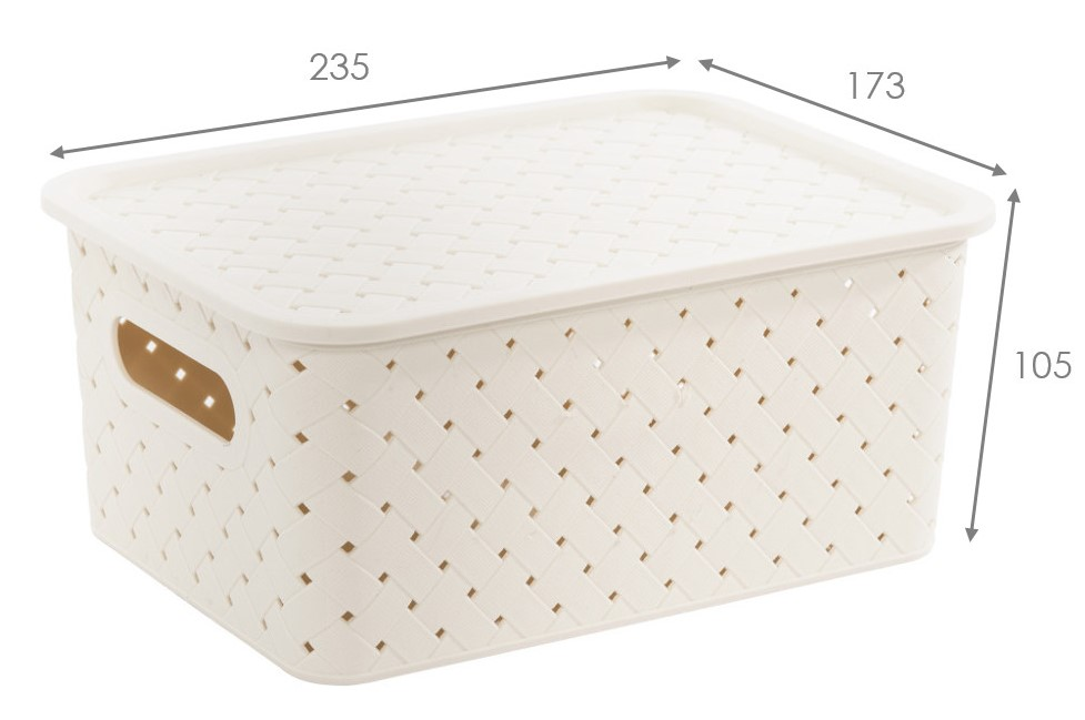 Корзина с крышкой универсальная Violet Береста 521126 слоновая кость 3л, 23.5 x 17.3 x 10.5см