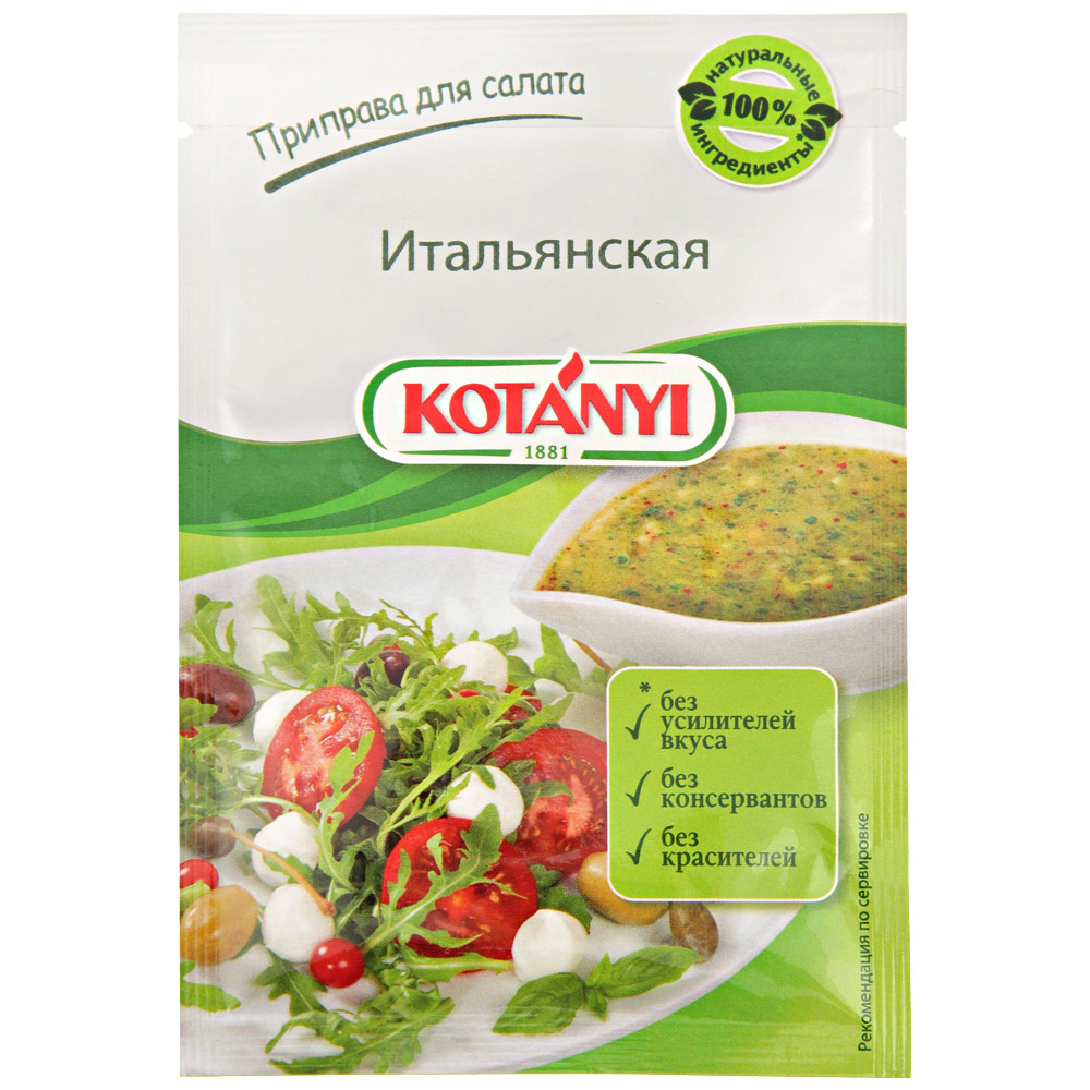 Приправа KOTANYI Итальянская, 13г отличается необычным вкусом и тонким ароматом. Производитель, известный австрийский бренд, использует для своих специй исключительно натуральное сырье безгМО, консервантов и усилителей вкуса. В рецепте Итальянской приправы используется смесь трав, которая придаетготовым блюдам уникальный неповторимый вкус. Лучше всего эта кулинарная смесь подходит к салатам. Ее можно просто добавить вготовый салат или же использовать для приготовления соусов, которыми он будет заправлен. Итальянская приправа отлично подходит для мяса, птицы, вторых блюд, маринадов.