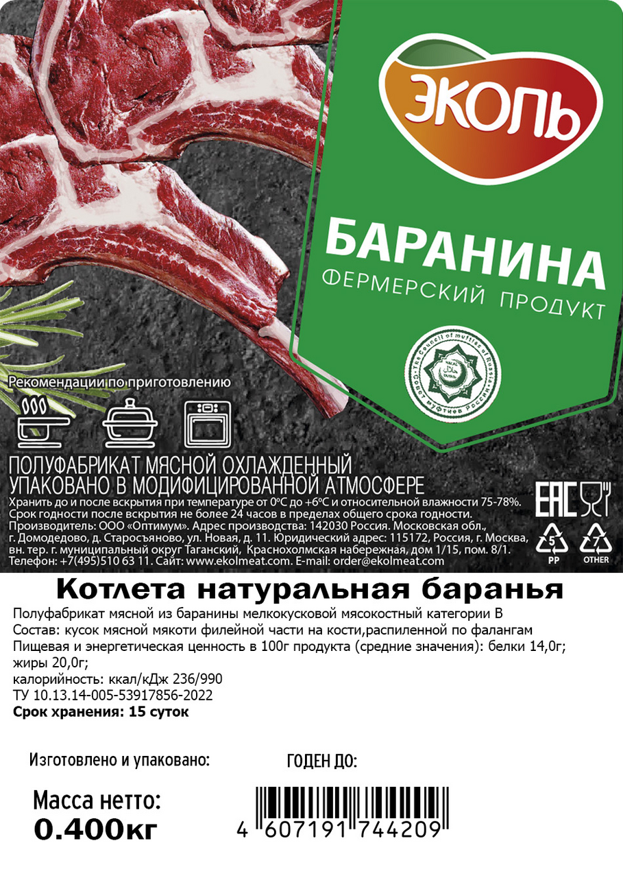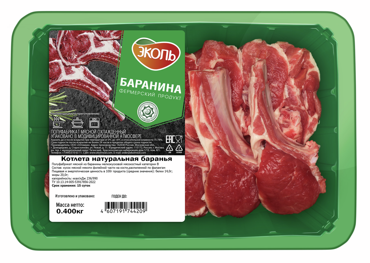 Котлета из баранины Эколь Халяль натуральная охлажденная, 400г