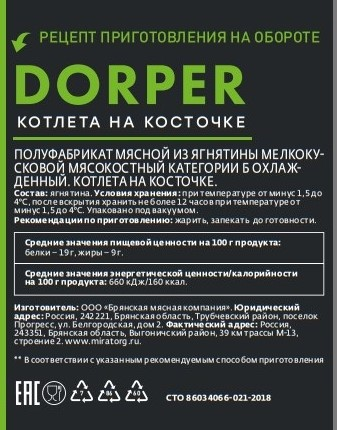 Котлета на косточке из ягнятины Мираторг Dorper охлажденная, 280г