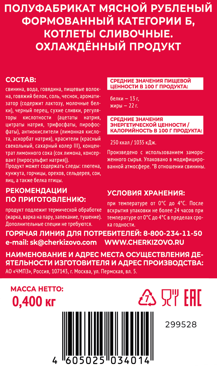 Котлеты Черкизово Сливочные охлажденные, 400г