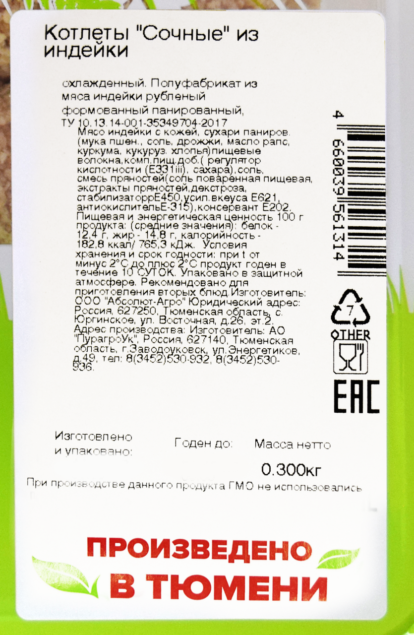 Котлеты из индейки Инди Сочные охлажденные, 300г