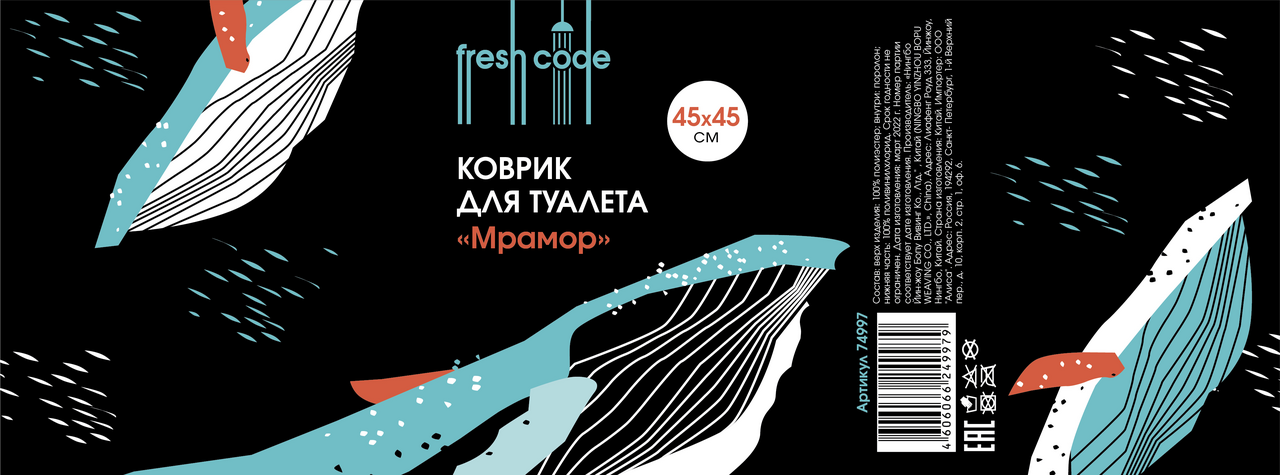 Коврик для туалета Fresh Code Мрамор микрофибра, 45 x 45см - стильный аксессуар для ванной и туалета. Коврик из мягкой микрофибры создает необходимый комфорт для ног. ПВХ покрытие обратной стороны коврика препятствует скольжению. Коврик имеет вырез удобной формы под унитаз.