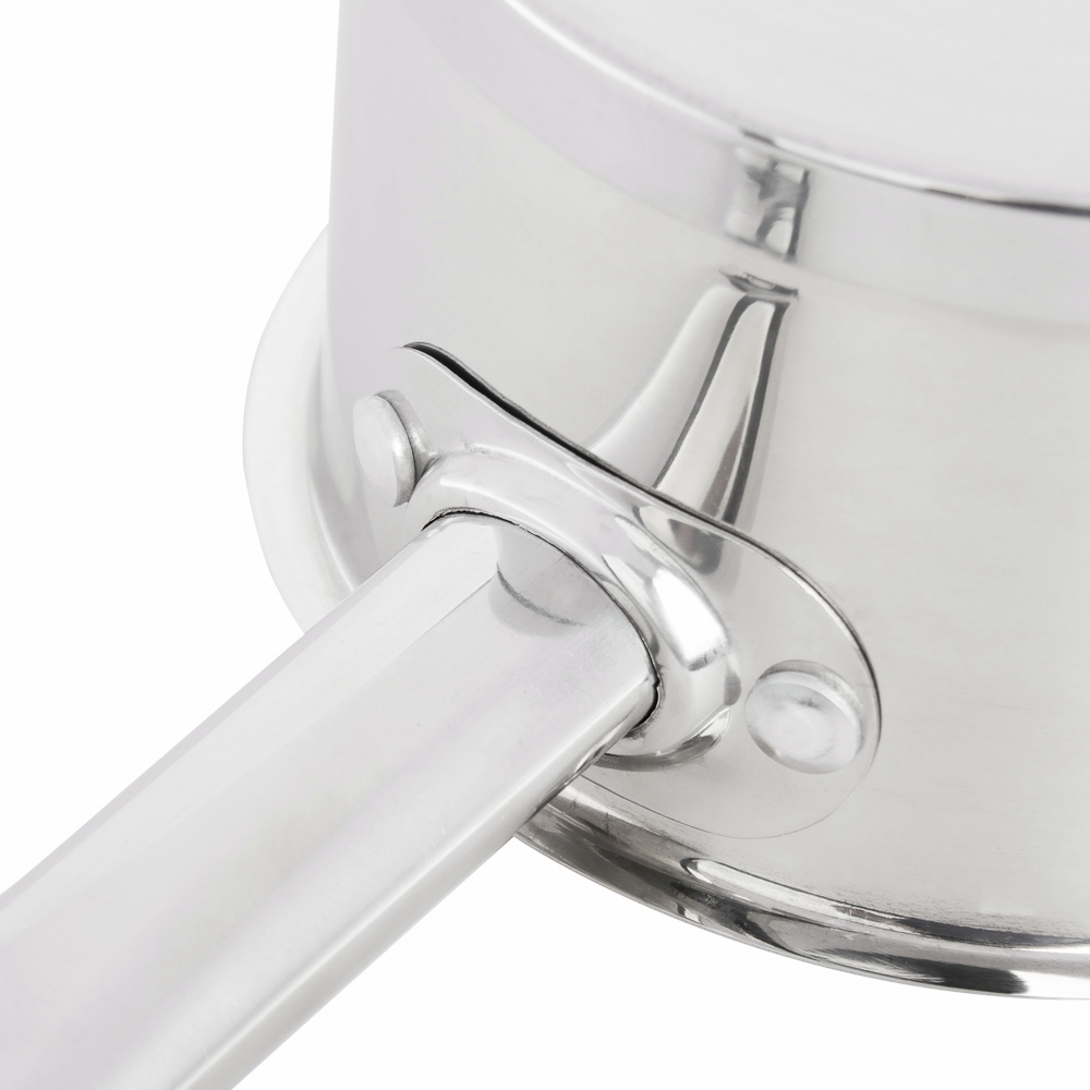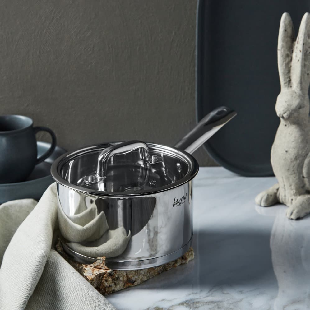 Ковш Ivlev Chef Royal с крышкой 2,5 л, 18 см выполнен из нержавеющей стали. Это прочный, устойчивый к деформации материал. Многослойное дно отлично защищает пищу от пригорания и равномерно распределяет температуру по всей поверхности посуды. При готовке в таком ковше потребуется минимальное количество масла. Ручка выполнена из того же материала, что и емкость. В комплекте идет стеклянная крышка с пароотводом. В представленной посуде каждой хозяйке будет удобно разогревать суп, борщ или приготовить небольшое количество каши, вскипятить молоко, протушить котлеты, приготовить тефтели или голубцы на небольшую компанию или семью. Ковш легко отмывается от остатков пищи с помощью влажной ткани или губки. Не рекомендуется использовать средства с абразивными частицами.