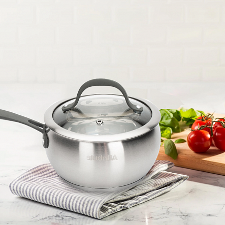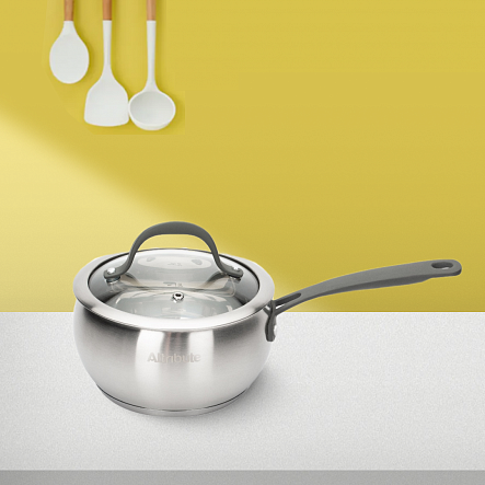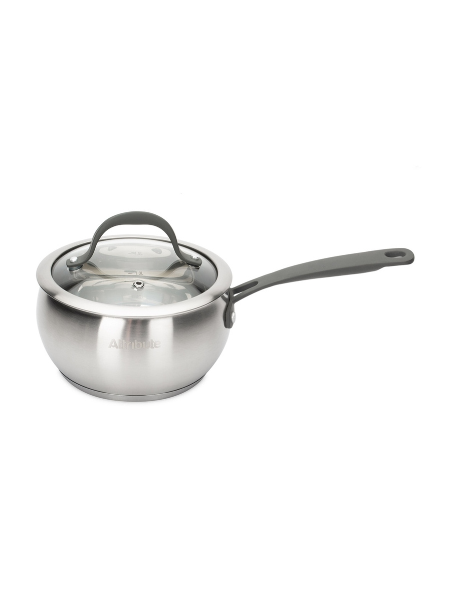 Ковш с крышкой Attribute Symphony 1,7 л, 16 см подходит для приготовления самых разных блюд на плите. В нем можно отварить овощи или яйца, приготовить суп или сварить кашу. Удобная эргономичная ручка ковша не нагревается во время готовки. Сама посуда обладает приличным весом, поэтому ровно стоит на плите во время использования, не опрокидывается. Материал стойко выдерживает высокие температуры, не деформируется и легко отмывается от остатков пищи.