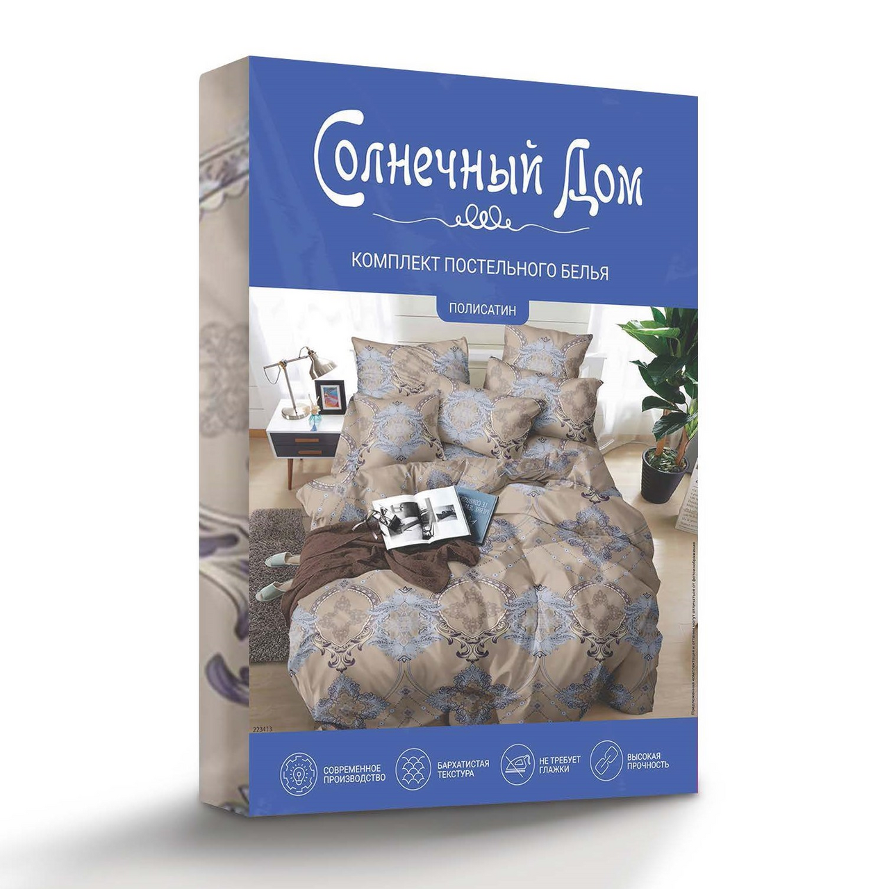Комплект постельного белья Солнечный дом Версаль полисатин, полутороспальный с оригинальным дизайном поможет создать эффектный акцент в любом интерьере. Комплект включает 2 наволочки, простыню и пододеяльник. Они выполнены из полисатина. Ткань характеризуется повышенной прочностью. Она вызывает приятные тактильные ощущения даже у людей с чувствительной кожей, хорошо пропускает воздух и отводит влагу, поддерживая естественную терморегуляцию во время сна. Высокая прочность нити и применение безопасных красителей позволяет использовать набор в течение многих лет. При этом изделия не утратят первоначального оттенка и формы. Рекомендуется постельное белье стирать в машине при температуре не выше 40 г��адусов, избегая отбеливающих средств. После стирки следует высушивать все изделия на воздухе или использовать низкую температуру сушилки для предотвращения усадки текстиля.