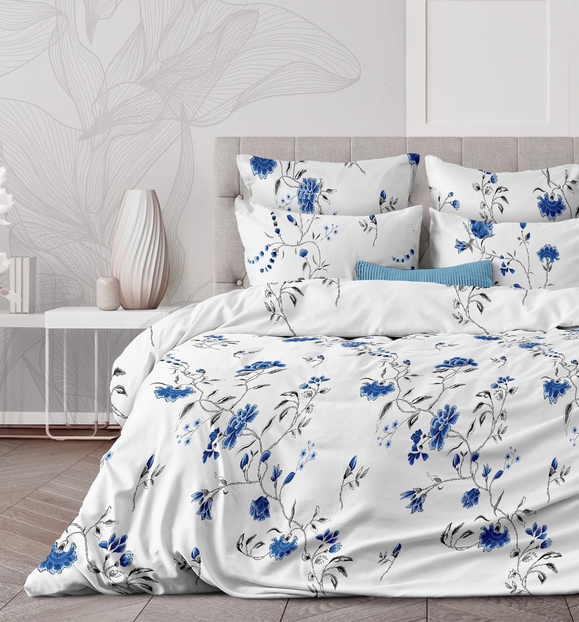 Tarrington House Комплект постельного белья перкаль голубые цветы двуспальное