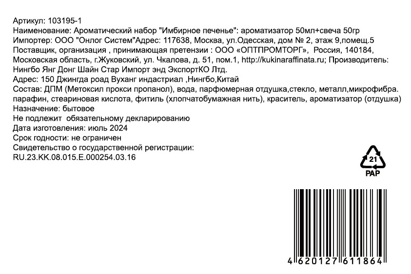 Ароматический̆ набор Имбирное печенье, свеча ароматическая 50гр + диффузор ароматический 50мл - это не просто аромат для дома, это настоящее погружение в атмосферу зимней сказки. Он станет неотъемлемой частью новогоднего настроения и отличным дополнением к праздничному декору.