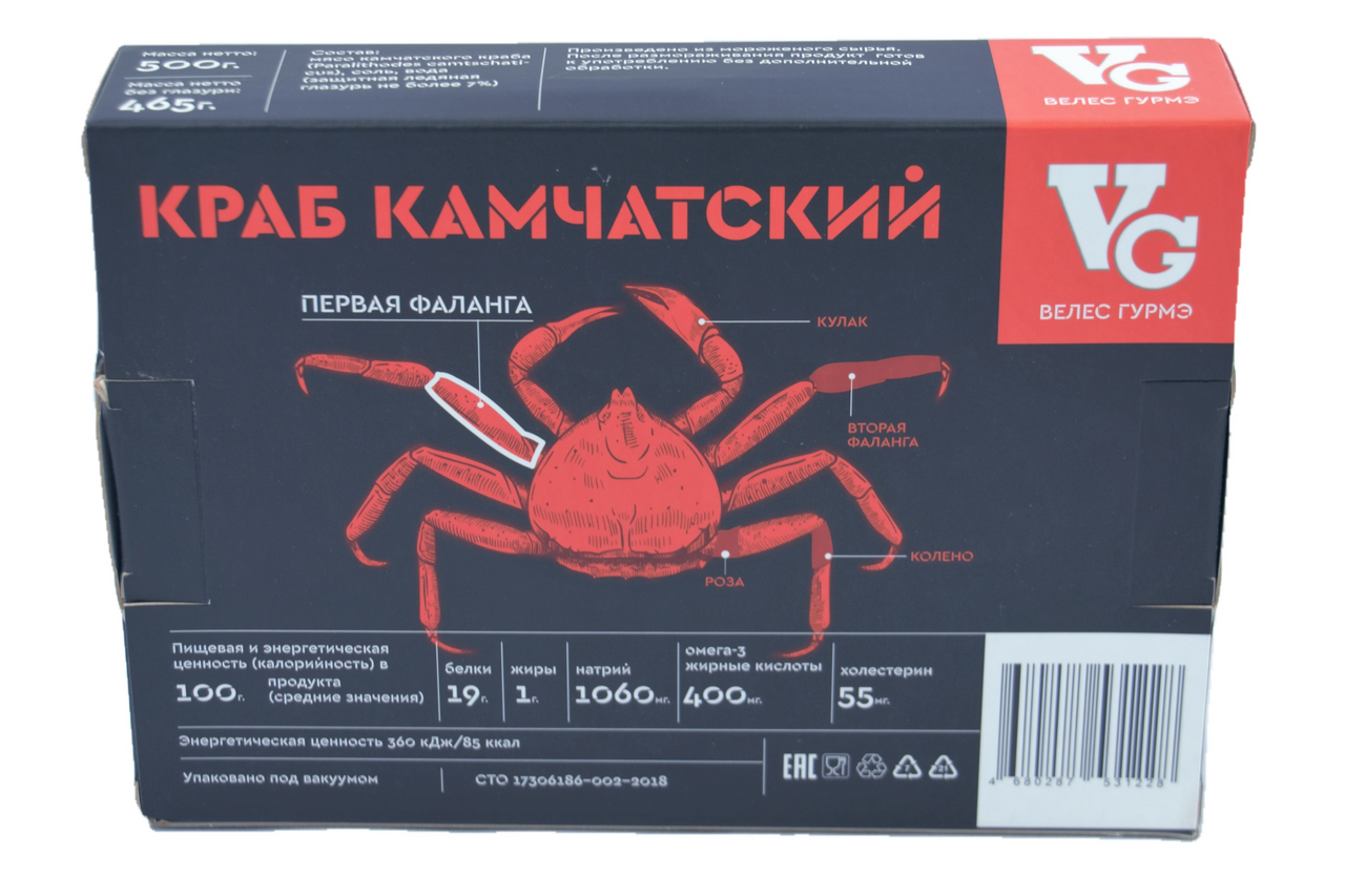 Краб Veles Gurme камчатский первая фаланга варено-мороженый, 500г