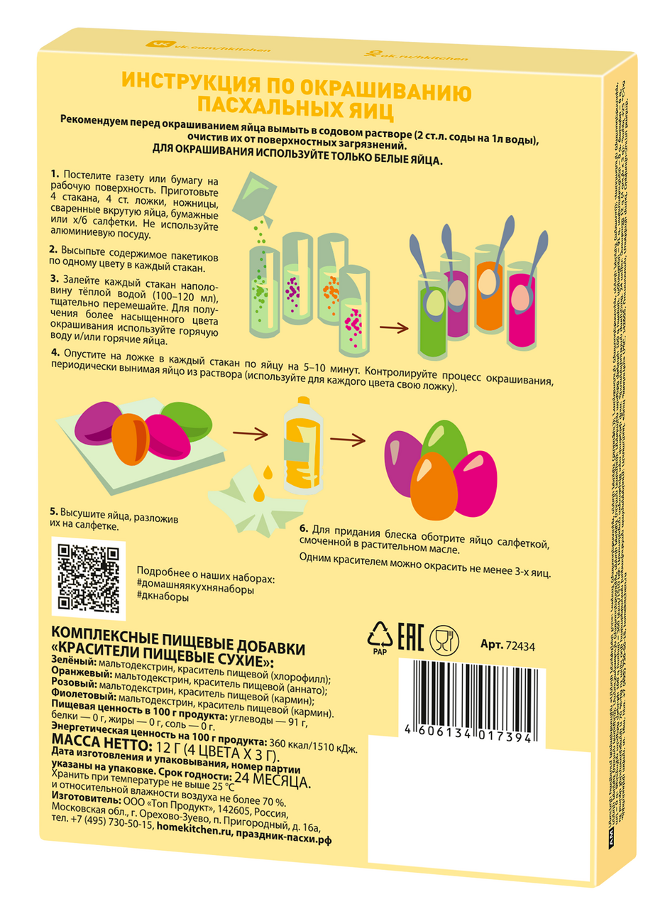 Наборнатуральныхкрасителейнаосноверастительныхиживотныхэкстрактовдляокрашиванияпасхальныхяиц.Красителивсухомвиденеобходимотолькорастворитьвстаканесводой.Тольковсёнатуральное.