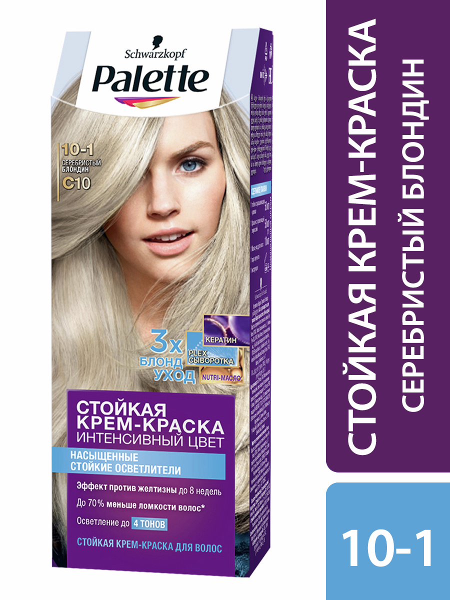 Крем-краска для волос Палетт Насыщенные стойкие осветлители C10 Серебристый блондин 10-1, 110мл