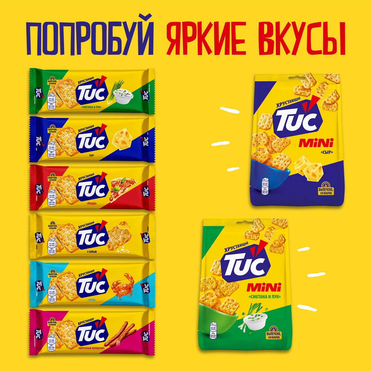 Участвует в конкурсе: Выиграйте кофемашину на сладкое! Совершите покупку товаров-участников на сумму от 1500₽ с 23 октября 2025г. по 14 января 2026г. и получите шанс выиграть кофемашину или другие сладкие призы! Чем больше покупок - тем больше шансов на победу! Подробнее об акции - https://cdn.metro-cc.ru/ru/mndlz_2025.pdf. Крекеры Tuc со вкусом пиццы — это снеки с уникальной хрустающей текстурой и вкусом любимого многими итальянского блюда — пиццы. Крекеры Tuc изготавливаются по оригинальному рецепту: они выпекаются, а не обжариваются, поэтому так аппетитно хрустят, тают во рту и раскрывают свой вкус плавно, но ярко! Снеки Tuc — это отличный вариант перекуса на учебу, работу или в дорогу. Крекер в компактной упаковке не занимает много места, поэтому его можно взять с собой куда угодно, или с удовольствием похрустеть им дома за просмотром любимого сериала. Крекеры Tuc — удачная альтернатива печенью, чипсам или выпечке: они сочетаются с соком, газированными напитками, водой, подходят к чаю или кофе. А если проявить немного кулинарной фантазии и добавить к этим крекерам немного соуса, паштета, зелени, кусочек сыра или ветчины — из них получатся отличные мини-закуски, которыми можно удивить друзей на вечеринке. Ищете вкусный, легкий и быстрый перекус для себя и близких? Тогда крекеры Tuc со вкусом пиццы — именно то, что вам нужно! Попробуй Tuc — расхрусти веселье!