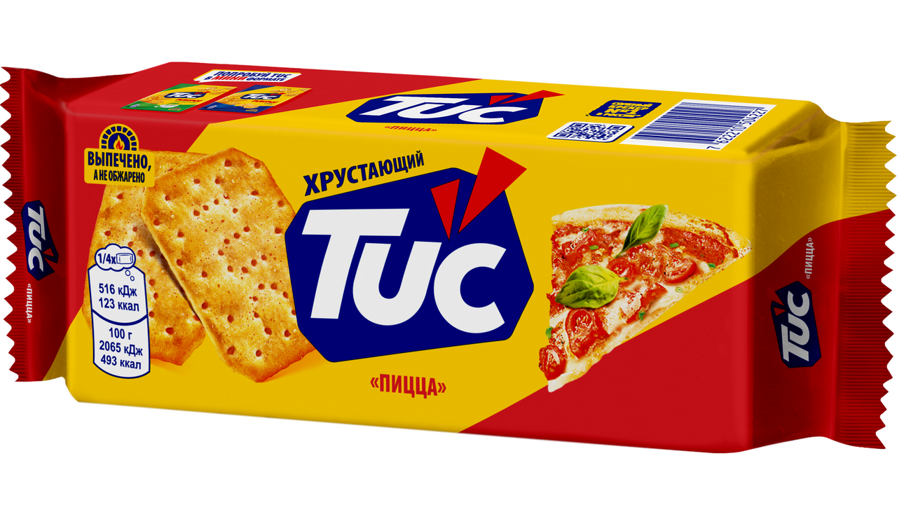 Участвует в конкурсе: Выиграйте кофемашину на сладкое! Совершите покупку товаров-участников на сумму от 1500₽ с 23 октября 2025г. по 14 января 2026г. и получите шанс выиграть кофемашину или другие сладкие призы! Чем больше покупок - тем больше шансов на победу! Подробнее об акции - https://cdn.metro-cc.ru/ru/mndlz_2025.pdf. Крекеры Tuc со вкусом пиццы — это снеки с уникальной хрустающей текстурой и вкусом любимого многими итальянского блюда — пиццы. Крекеры Tuc изготавливаются по оригинальному рецепту: они выпекаются, а не обжариваются, поэтому так аппетитно хрустят, тают во рту и раскрывают свой вкус плавно, но ярко! Снеки Tuc — это отличный вариант перекуса на учебу, работу или в дорогу. Крекер в компактной упаковке не занимает много места, поэтому его можно взять с собой куда угодно, или с удовольствием похрустеть им дома за просмотром любимого сериала. Крекеры Tuc — удачная альтернатива печенью, чипсам или выпечке: они сочетаются с соком, газированными напитками, водой, подходят к чаю или кофе. А если проявить немного кулинарной фантазии и добавить к этим крекерам немного соуса, паштета, зелени, кусочек сыра или ветчины — из них получатся отличные мини-закуски, которыми можно удивить друзей на вечеринке. Ищете вкусный, легкий и быстрый перекус для себя и близких? Тогда крекеры Tuc со вкусом пиццы — именно то, что вам нужно! Попробуй Tuc — расхрусти веселье!