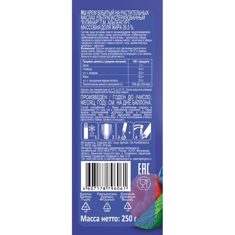 Крем Альпенгурт взбитый кулинар 26.5%, 250г