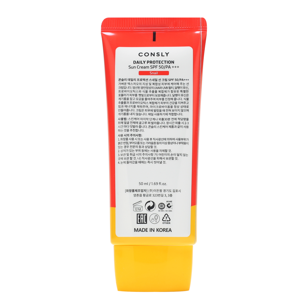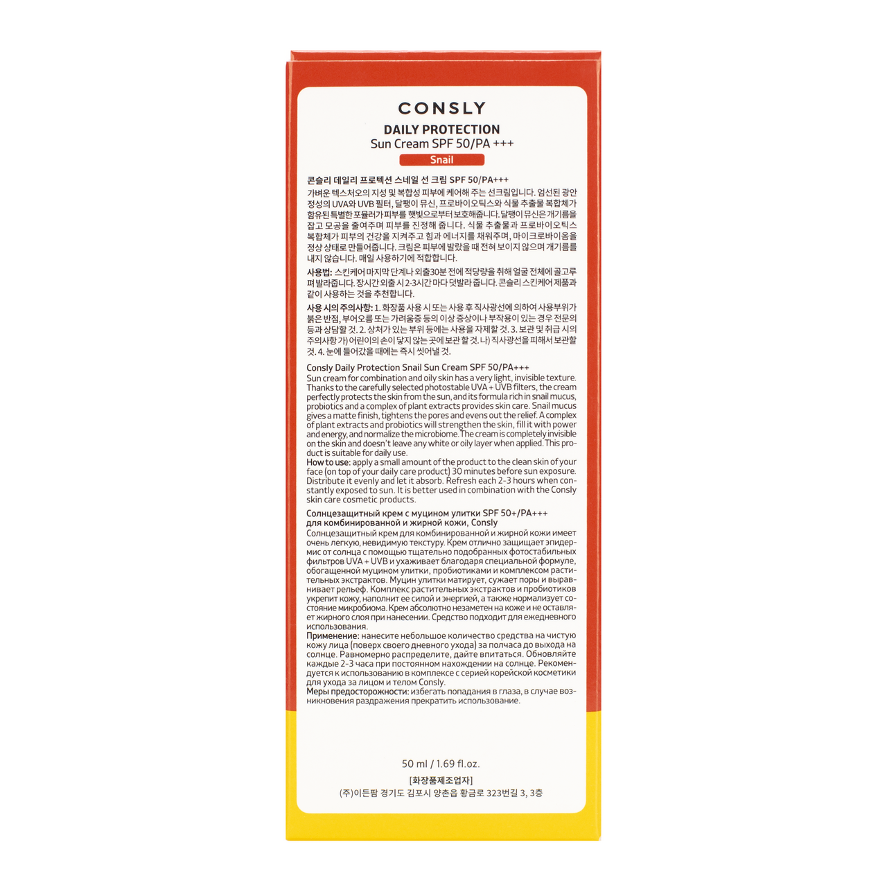 Крем Consly солнцезащитный с муцином улитки SPF50, 50мл